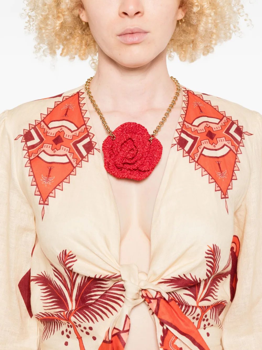 Бежевый V-образный вырез, графический принт по всей поверхности