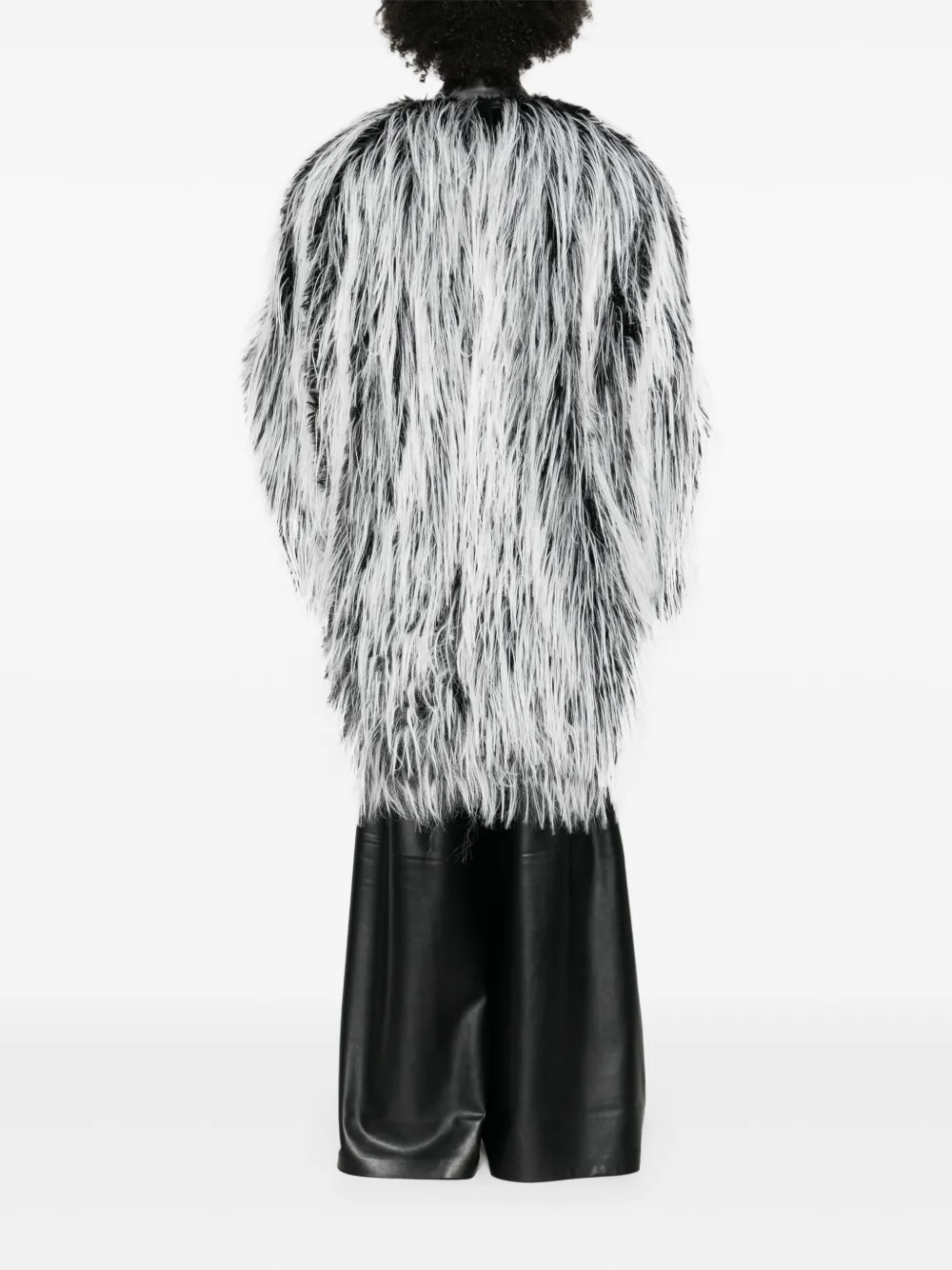 Черно-белый искусственный мех, длинные рукава, открытый перед, ворсистая текстура, прямой подол