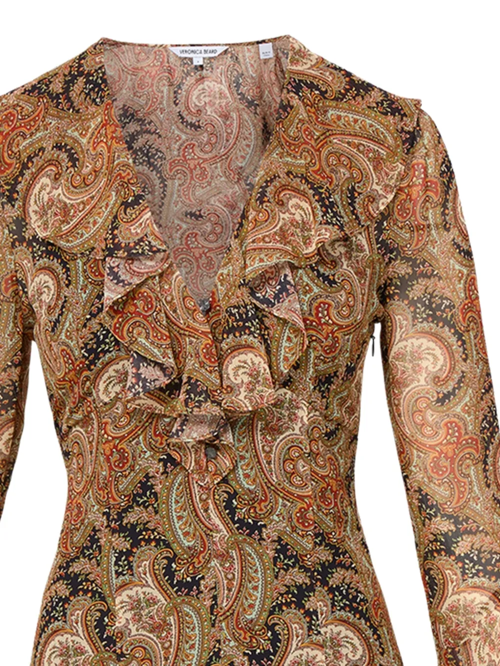 Мини-платье Adrienne с принтом пейсли и рукавами-колокольчиками Veronica Beard, коричневый 65 666₽