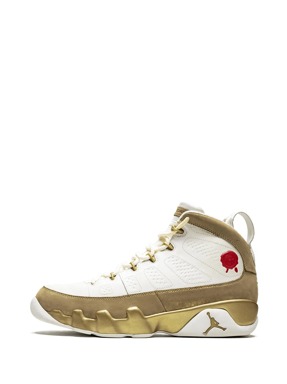 Кроссовки Air Jordan 9 Retro Premio от Jordan. Длина по щиколотку, шнуровка спереди, металлические украшения и плоская резиновая подошва. Цвет: белый. Эта модель представлена на маркетплейсе, где можно найти самые редкие модели одежды и кроссовок, о которых мечтают коллекционеры и любители streetwear по всему миру.