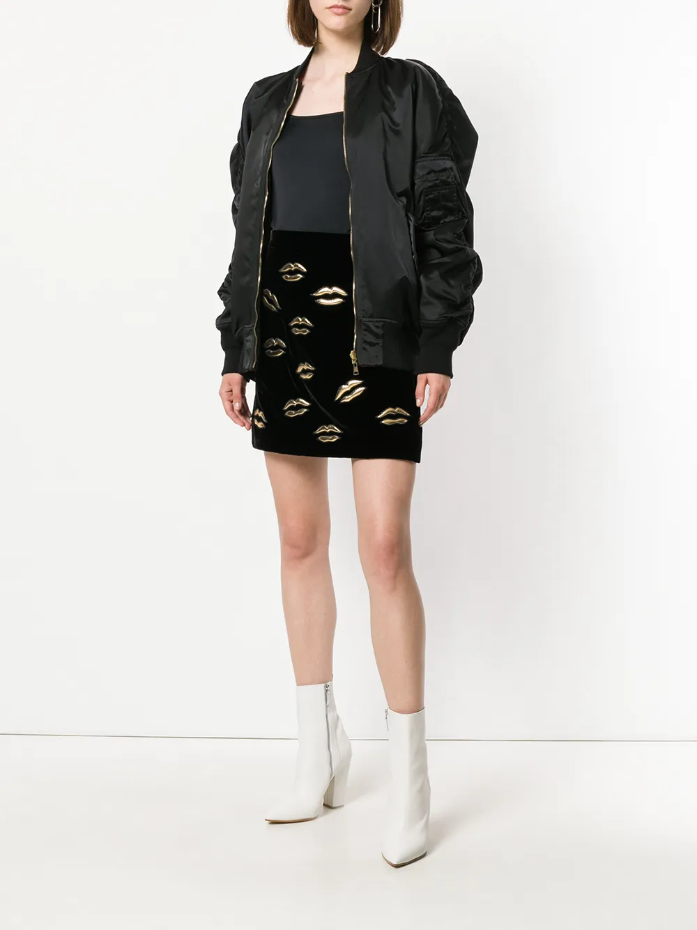 Черная А-образная мини-юбка из шелка и овечьей кожи с принтом от Givenchy(Живанши). Завышенная талия, потайная застежка на молнии сзади, А-образный силуэт, короткая длина, потайная застежка на молнии сзади.