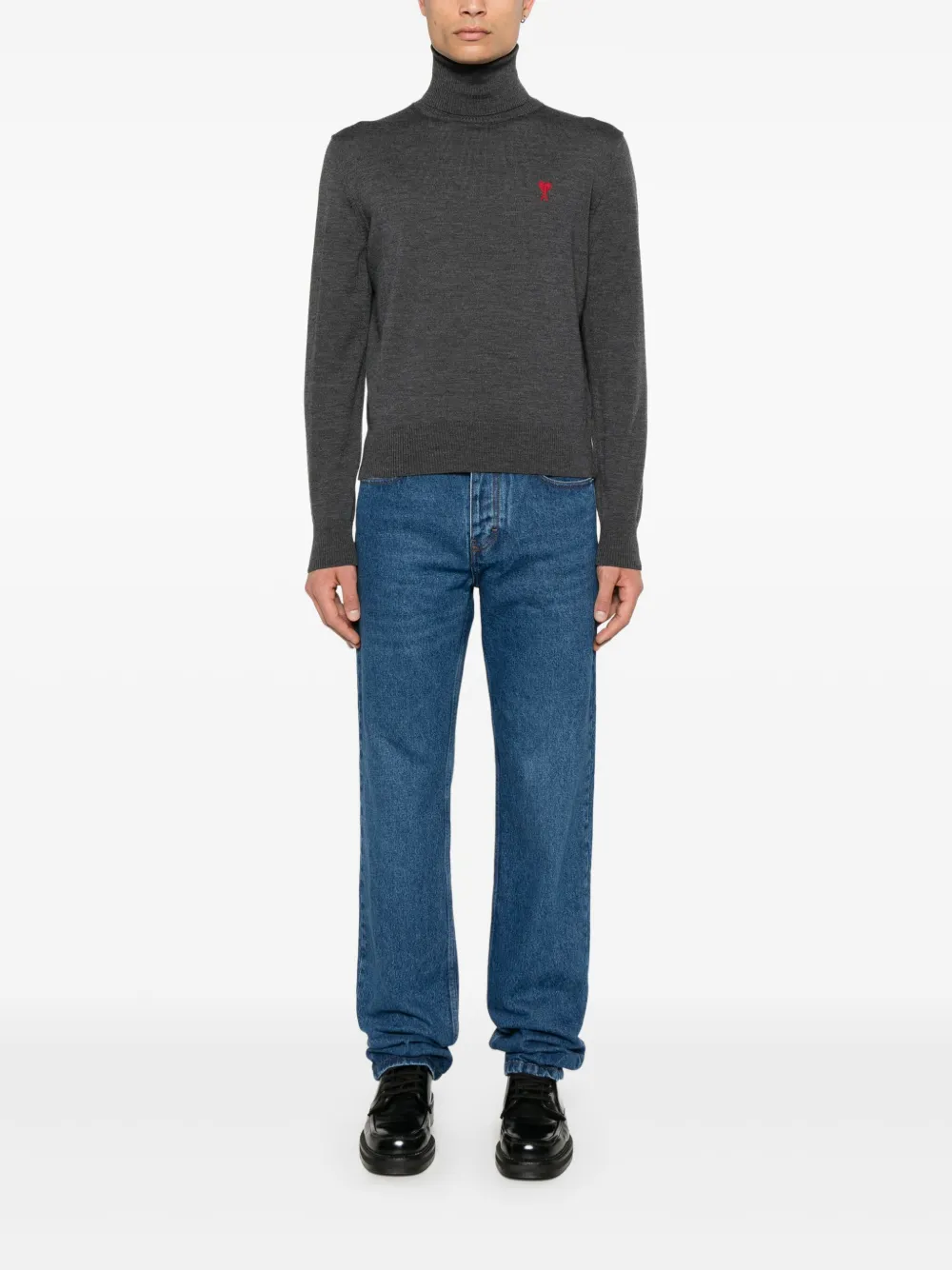 Шерстяной джемпер с монограммой Ami de Coeur AMI Paris, серый