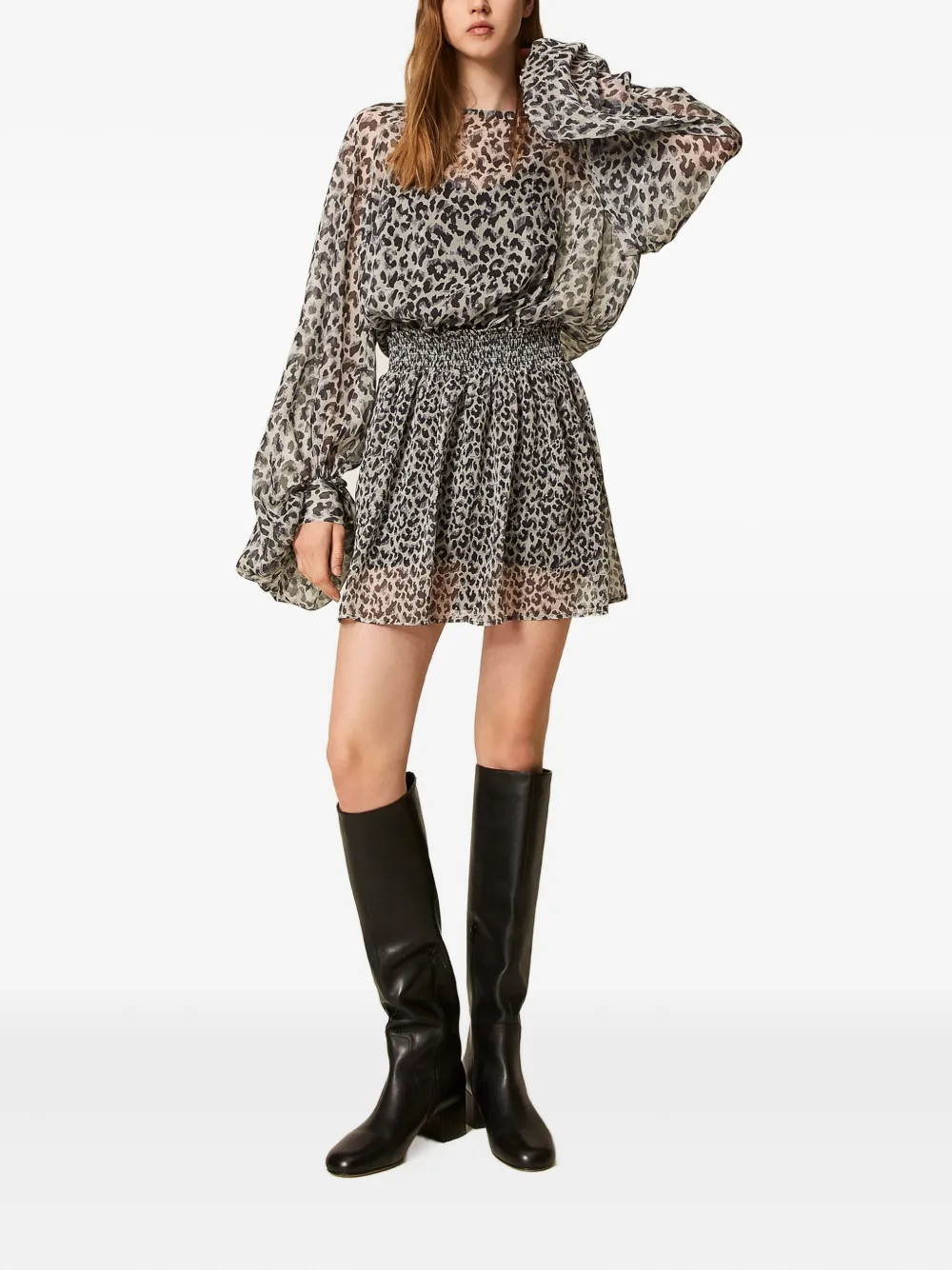 Платье с анималистичным принтом TWINSET, серый