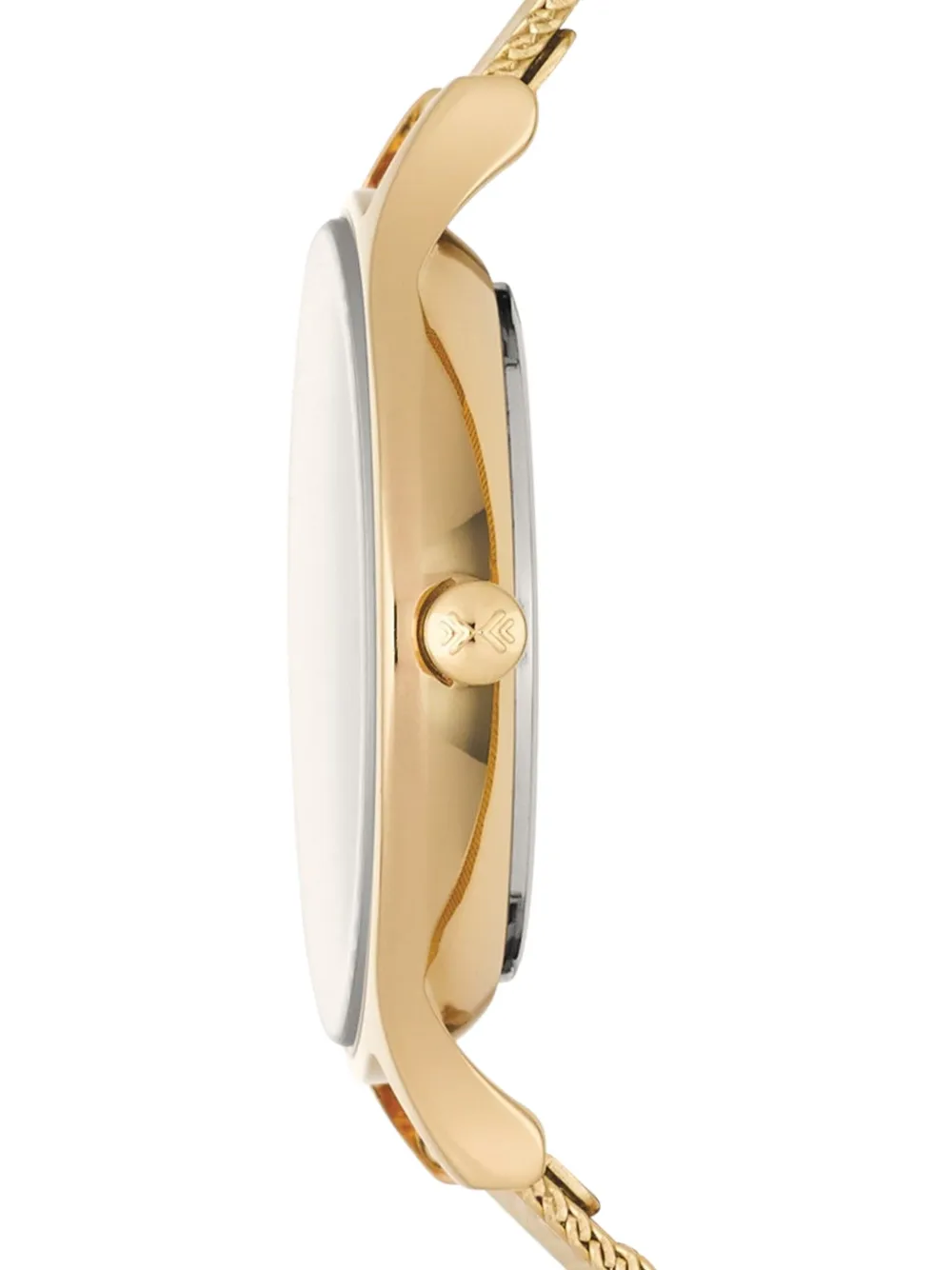 Серый корпус 30 мм из нержавеющей стали, круглый циферблат, хрустальные маркеры, указательные стрелки, кварцевый механизм, завинчивающаяся заводная головка, сетчатый браслет.