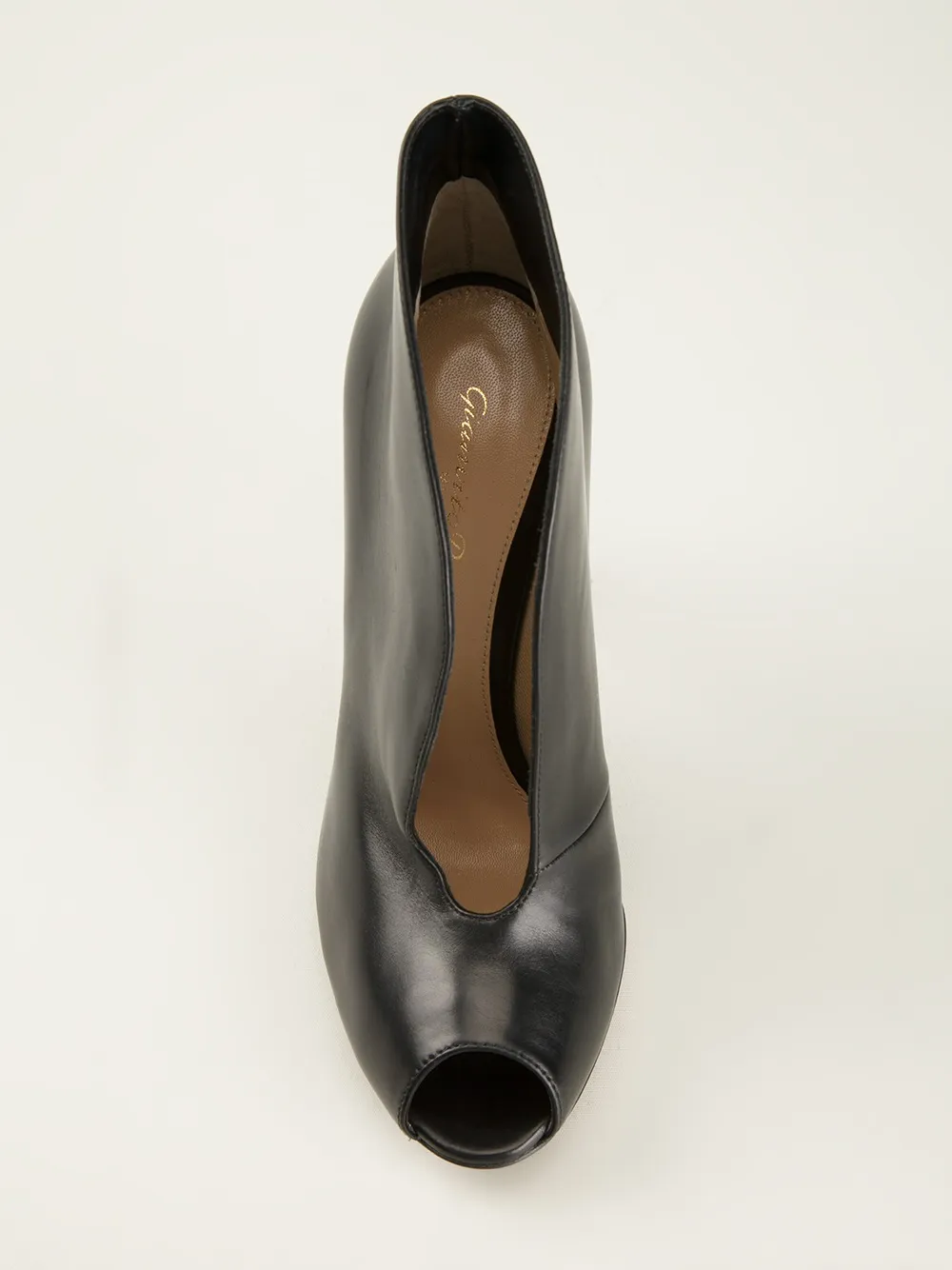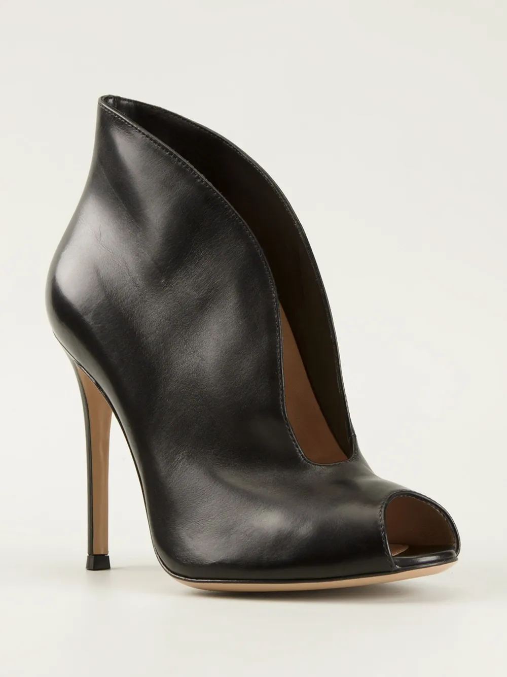 Черные кожаные ботильоный с вырезом спереди от Gianvito Rossi. Открытый мысок, стелька с тиснением бренда, высокая шпилька.