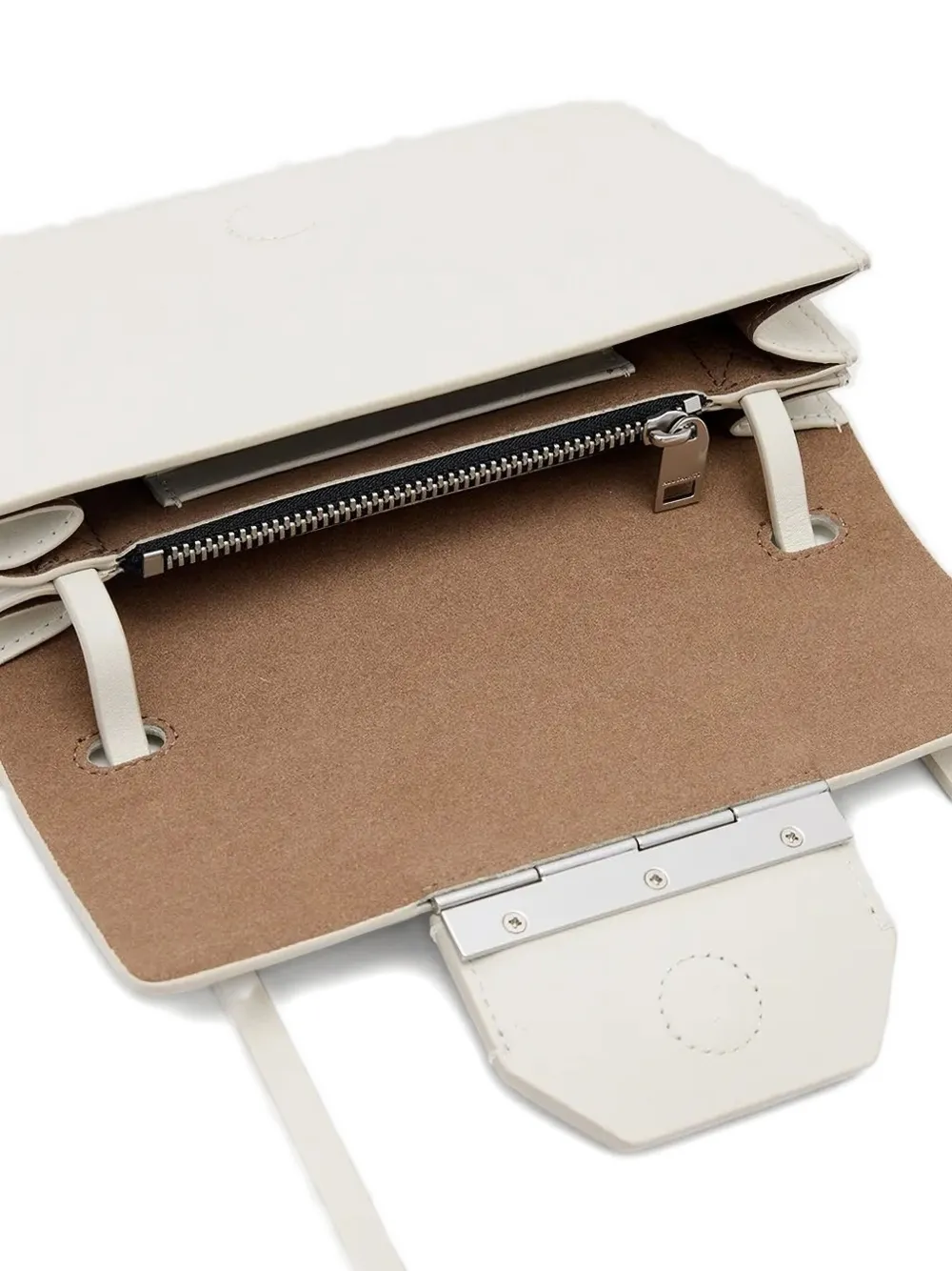 Откидной клапан из белой телячьей кожи, магнитная застежка, внутренние отделения для карточек