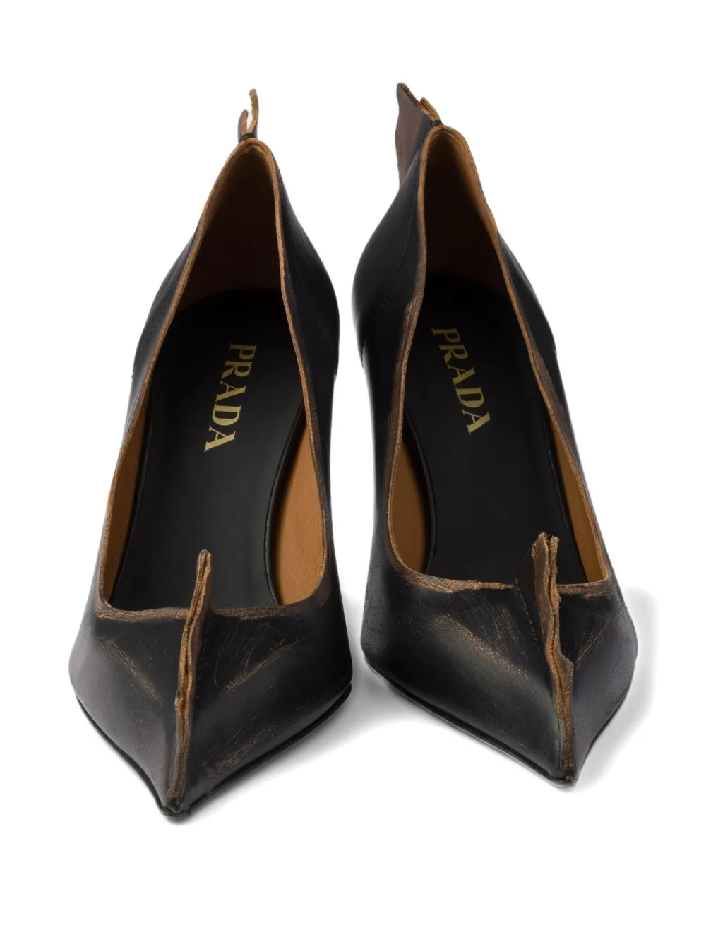 Туфли Antiqued 85 с заостренным носком Prada, черный