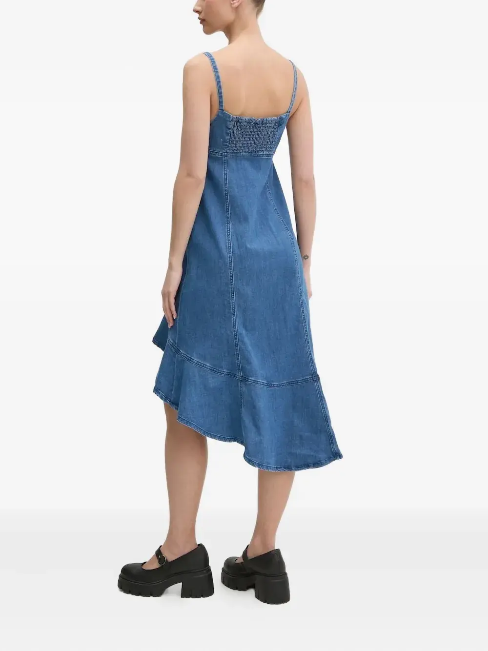 Асимметричное джинсовое платье миди с оборками Desigual, синий