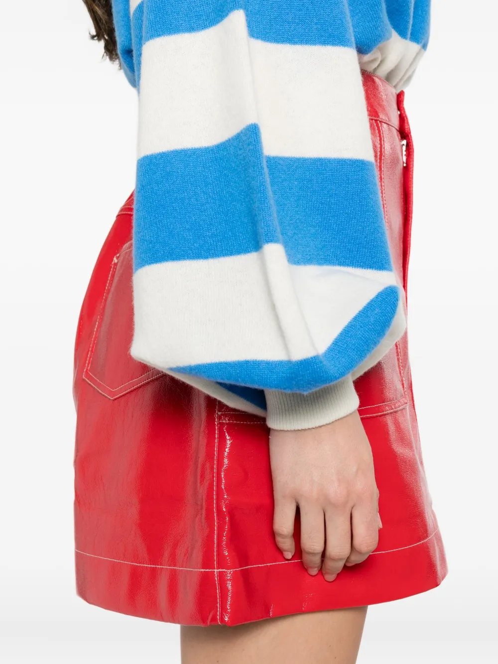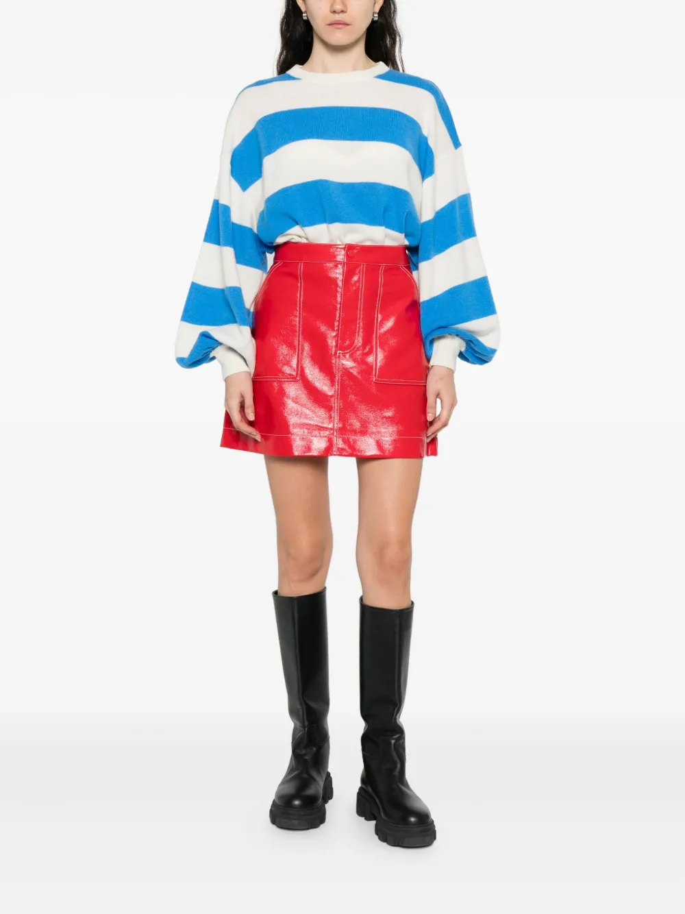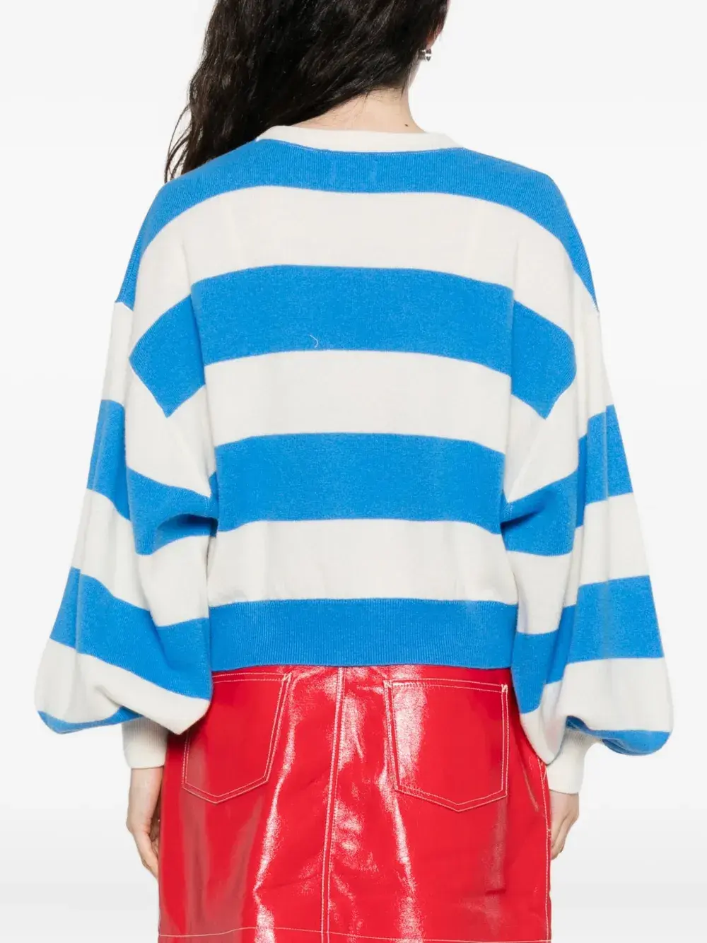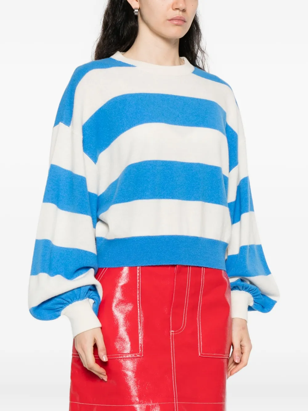 Синие белые полосы, рукава-фонарики, круглый вырез