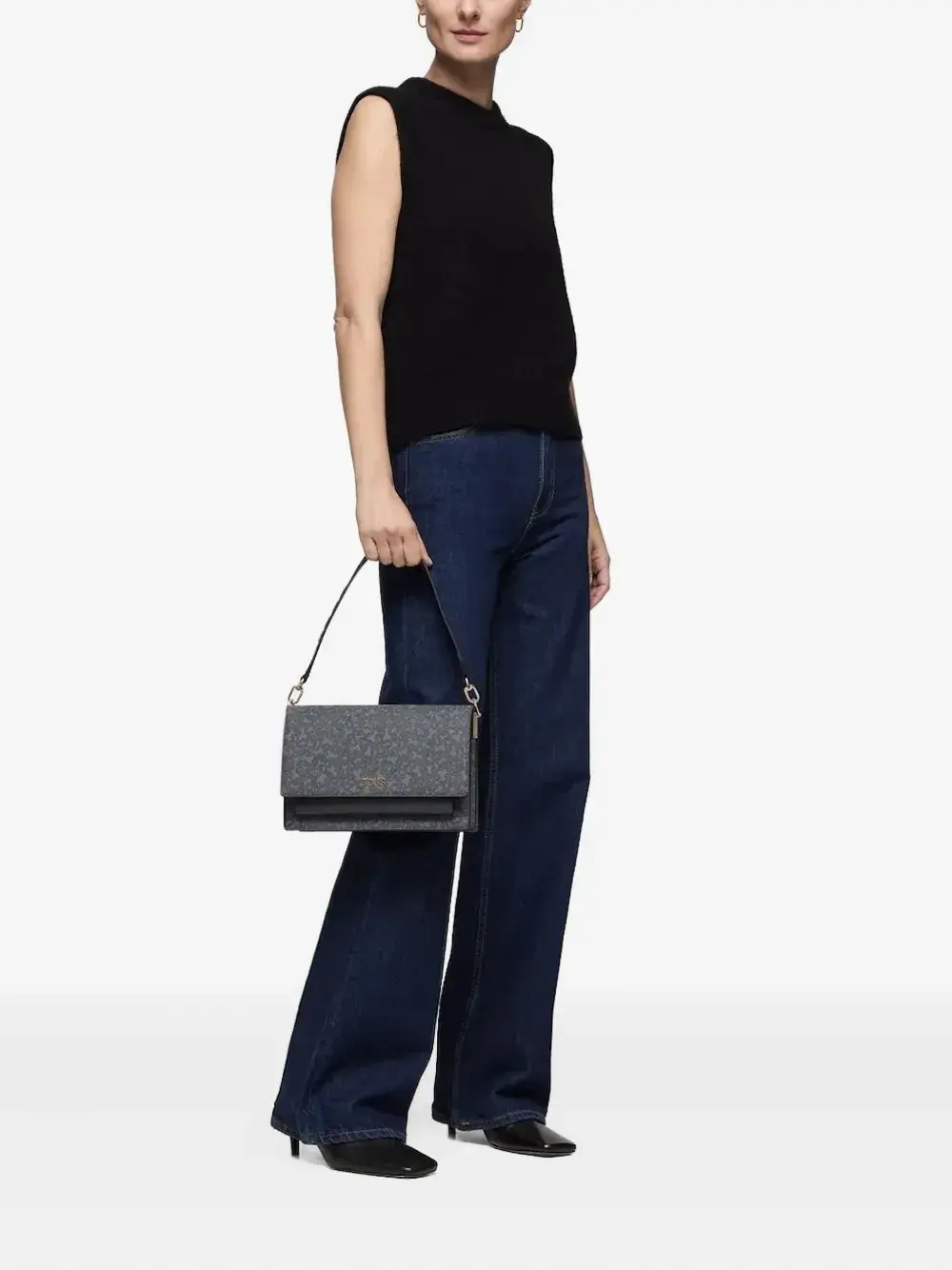 Съемный плечевой ремень с серым цветочным принтом, застежка-молния сверху, фурнитура золотистого цвета