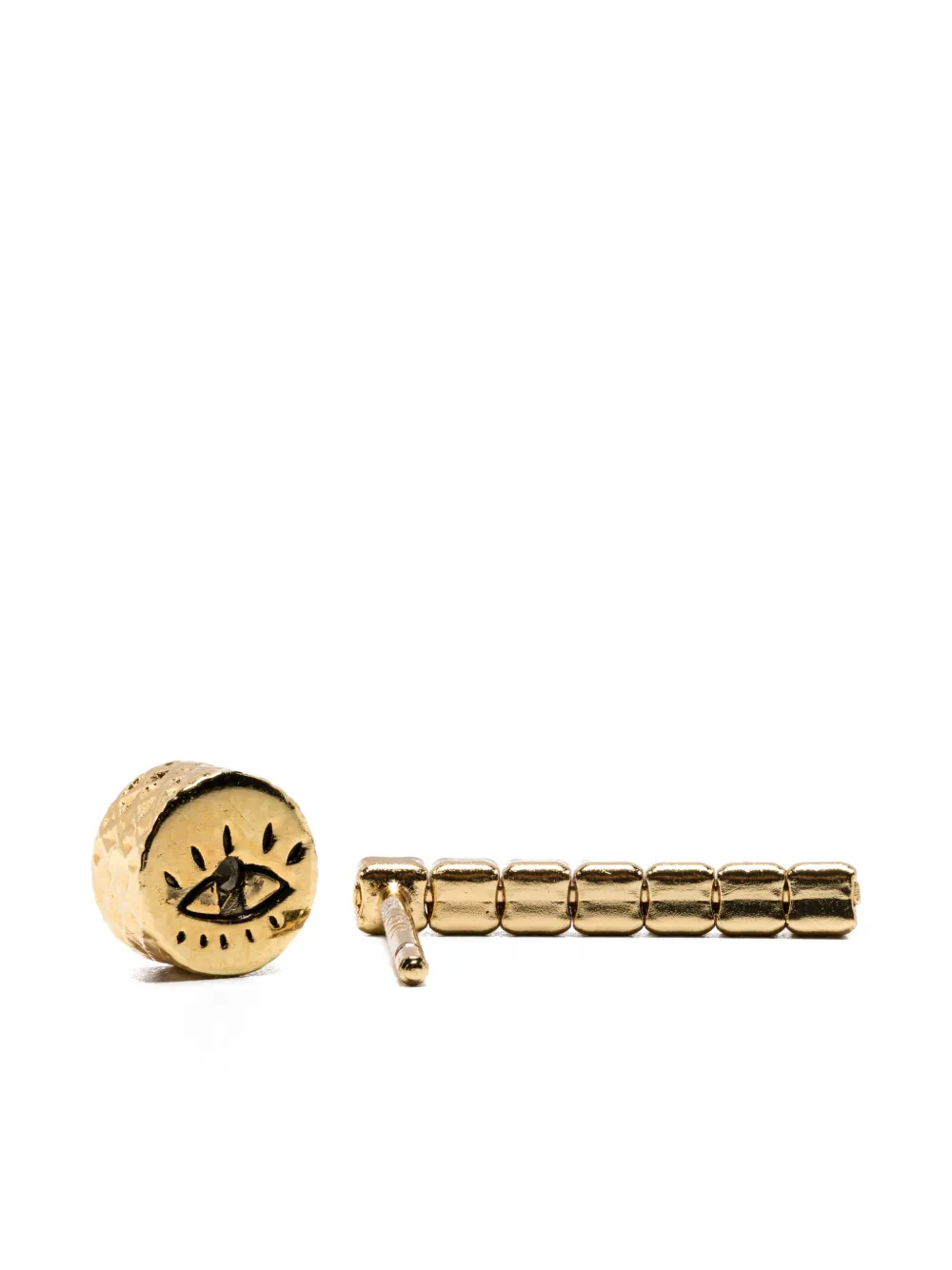 Серьги с золотым авантюрином, позолоченным вермелем, линейным дизайном, с застёжкой-гвоздиком. Эти серьги продаются парой. Ежедневное использование и воздействие внешних факторов могут привести к потере блеска драгоценных камней и золотых поверхностей. Для ухода используйте специальные неабразивные средства, предназначенные для чистки ювелирных изделий.
