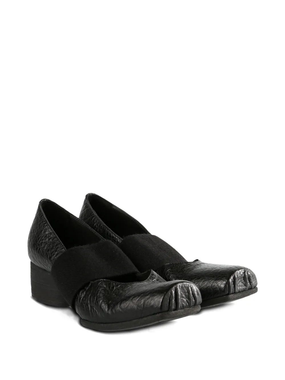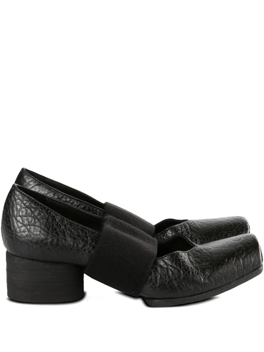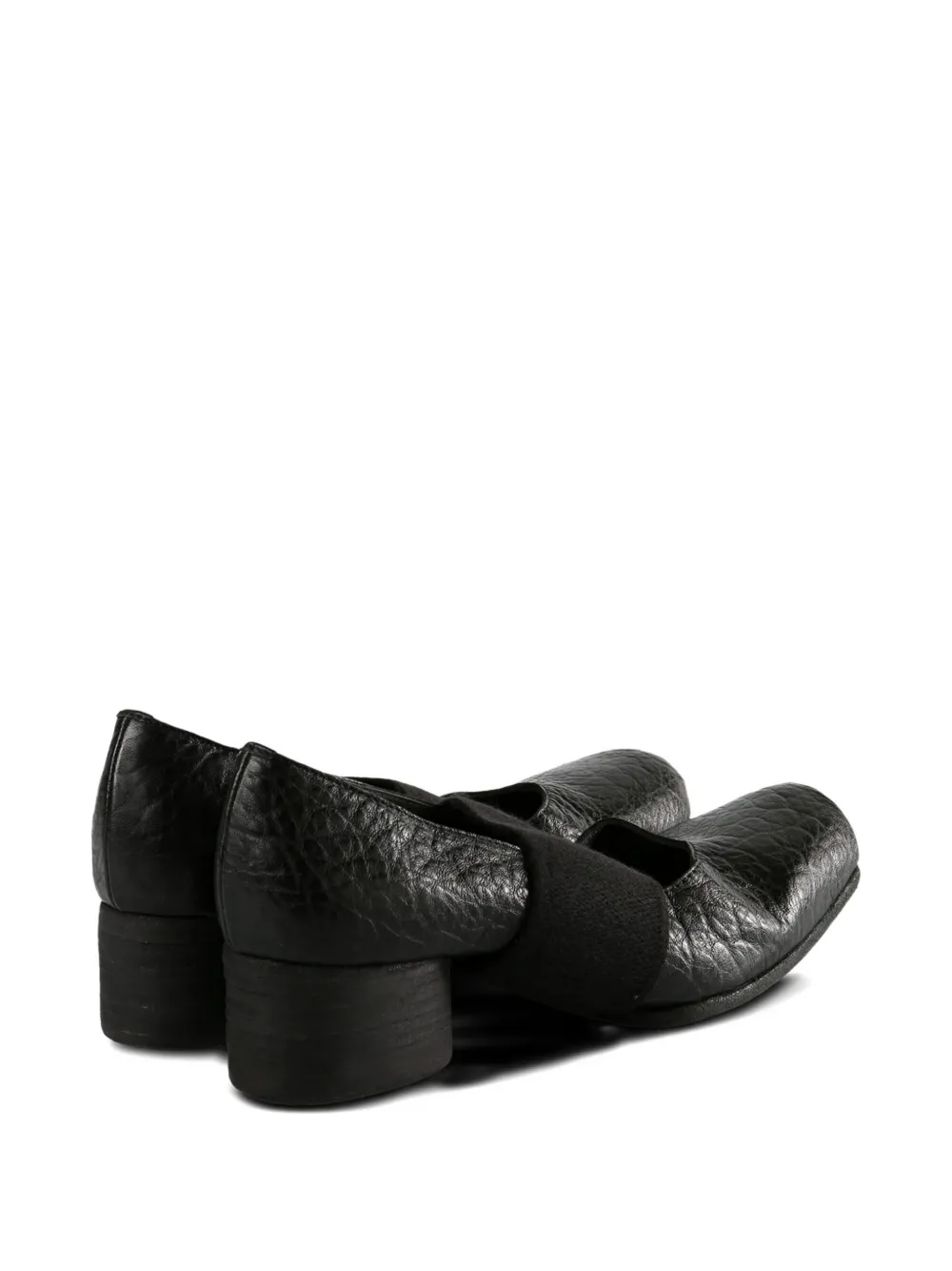 Туфли из черной кожи с эластичным ремешком, на низком каблуке с квадратным носком, без застежки
