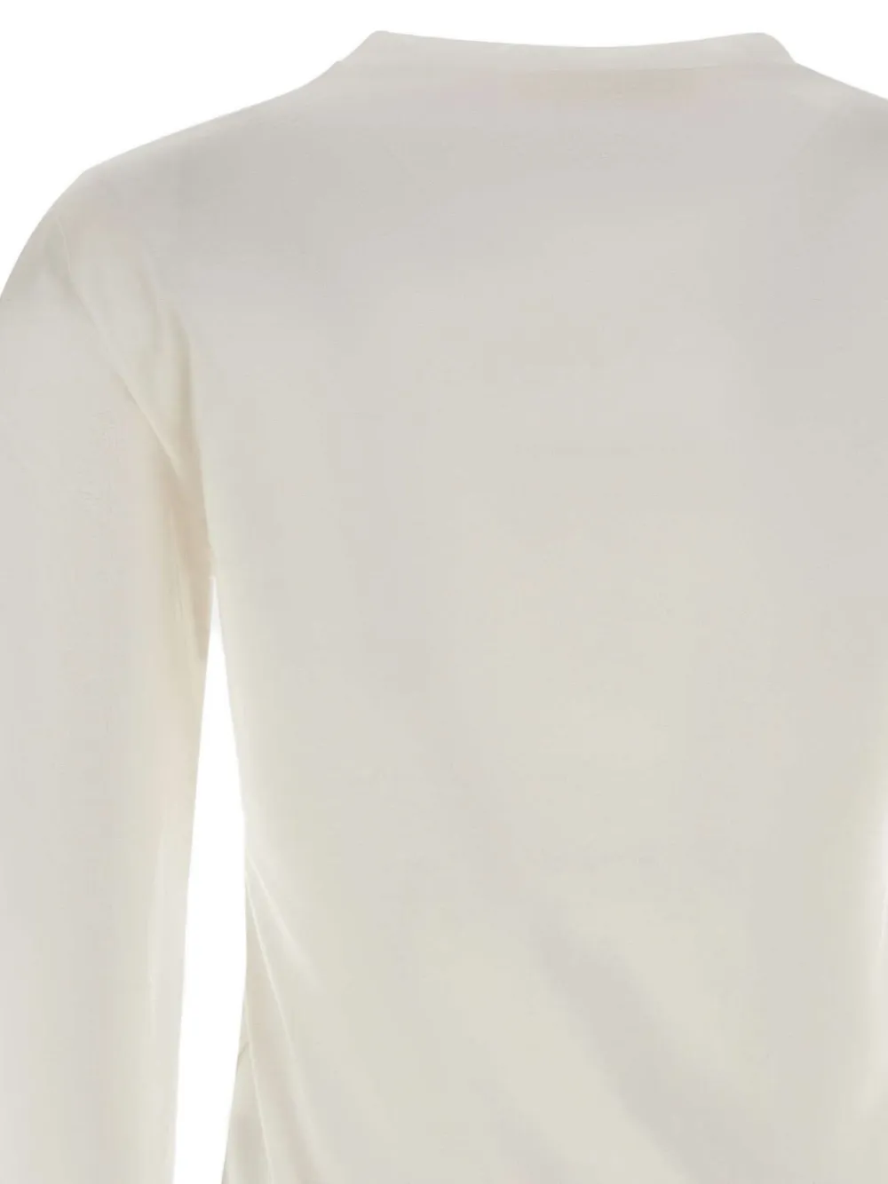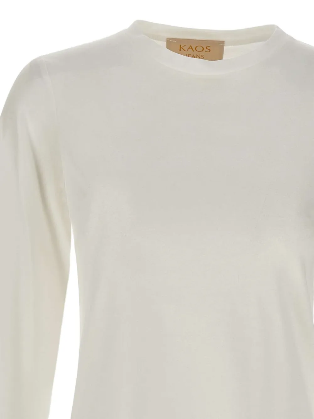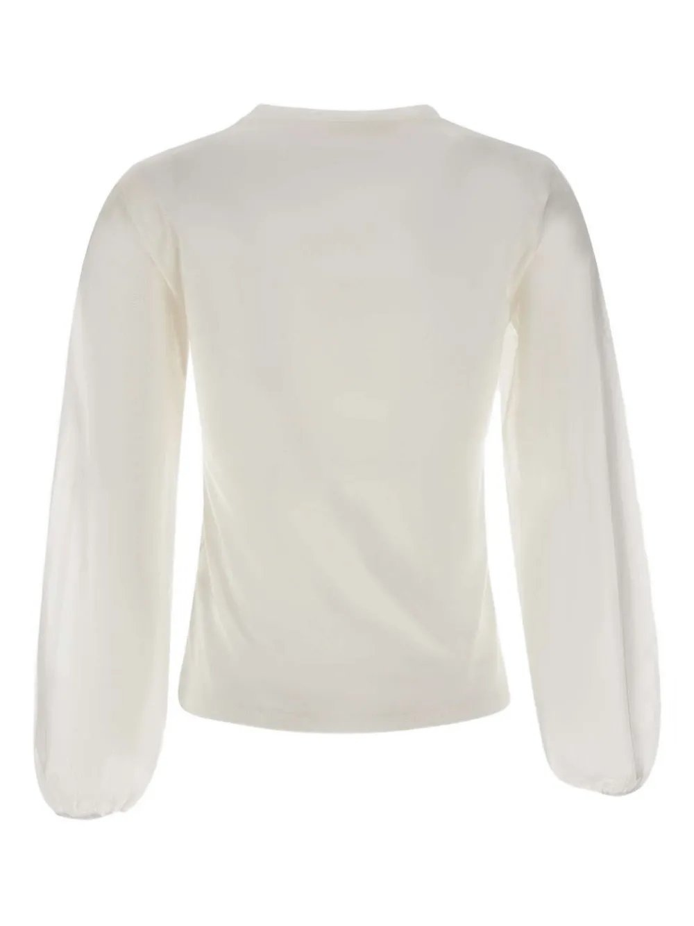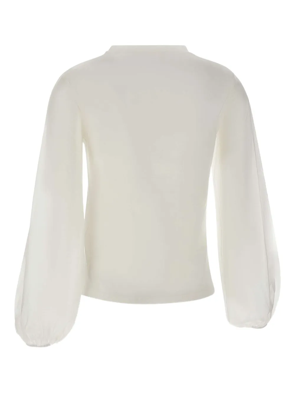 Белоснежный круглый вырез, длинные рукава, рукава-фонарики, эластичные манжеты