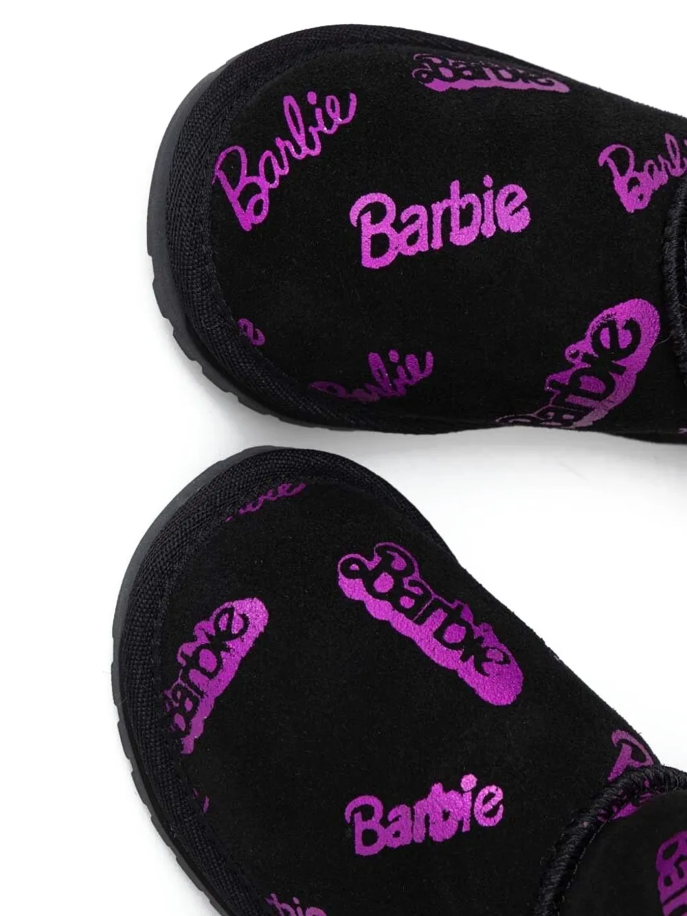 Черные замшевые туфли с логотипом Барби, плоская подошва, круглый носок, застежка-липучка