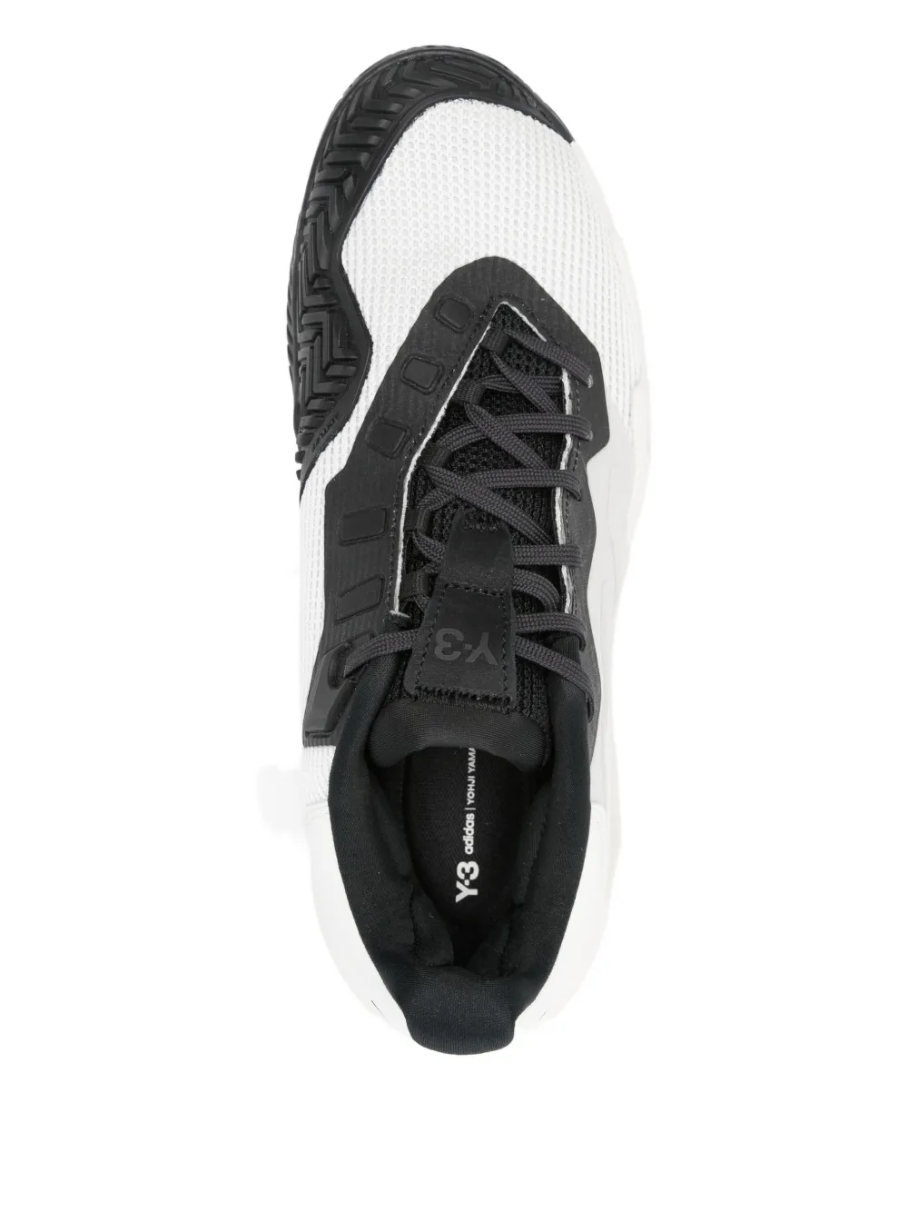 Бело-черные детали, сетчатые вставки, шнуровка, текстурированная подошва, низкий профиль