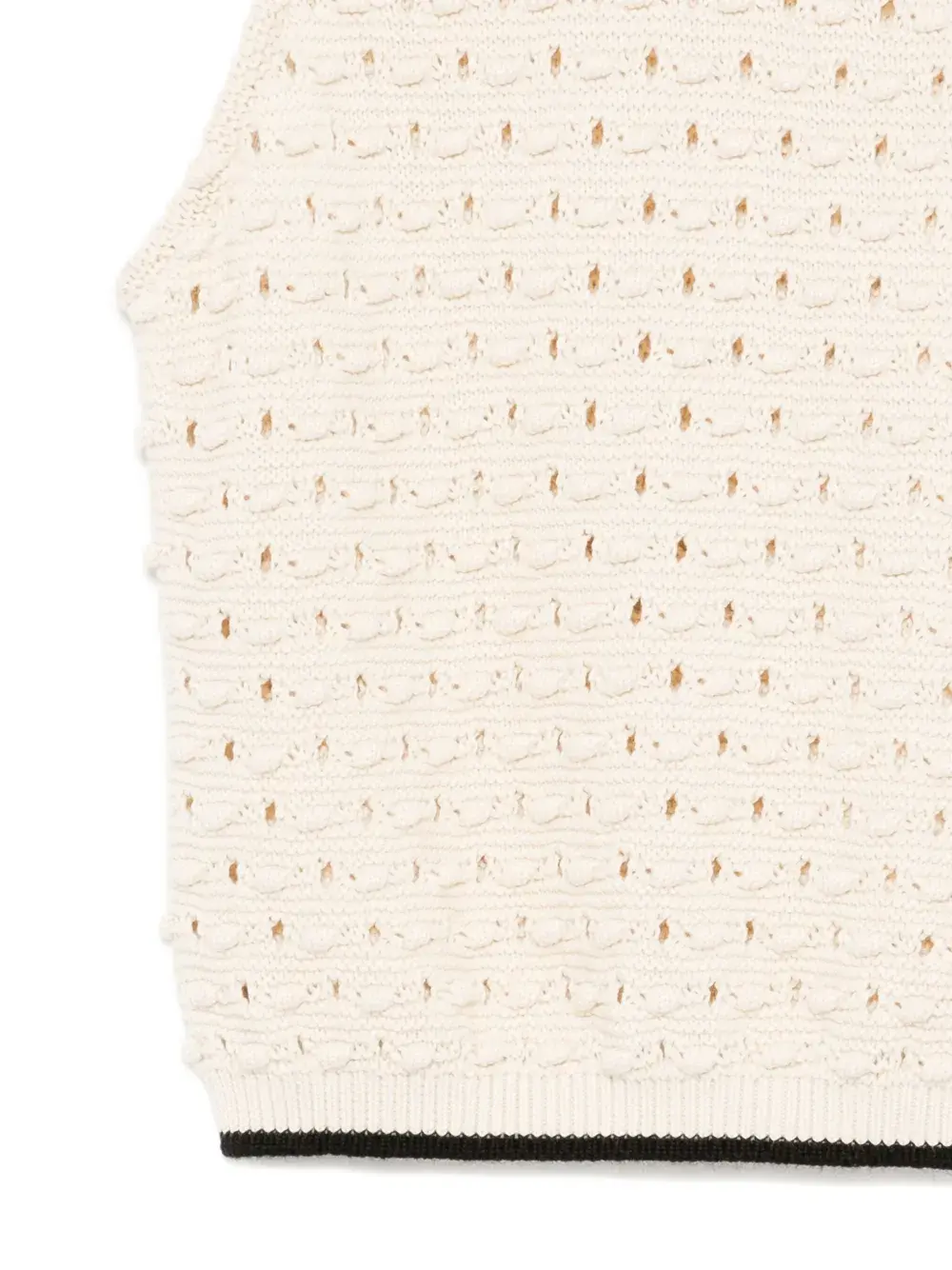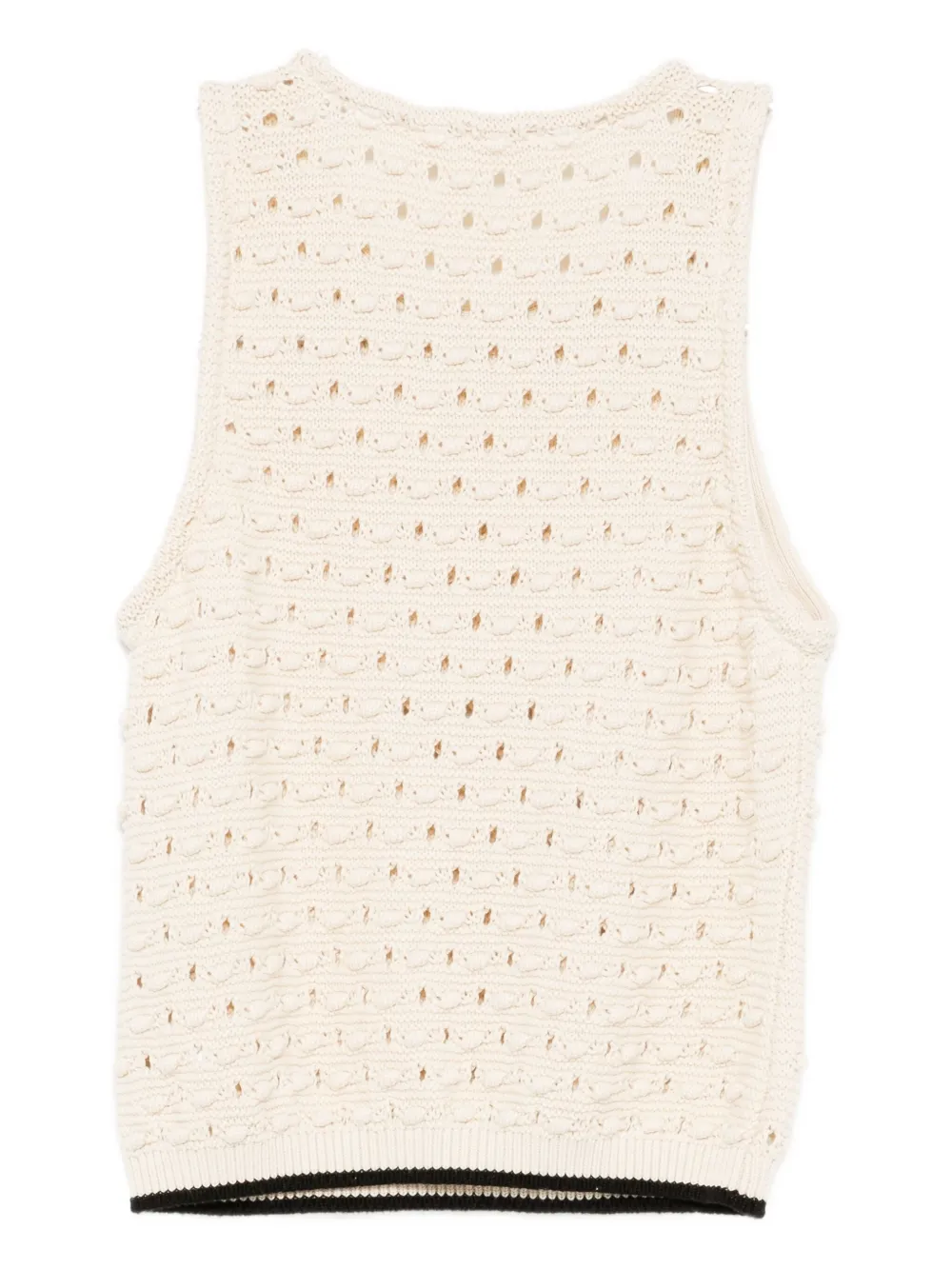 Кремово-белый овальный вырез без рукавов с ребристым подолом и ажурной отделкой