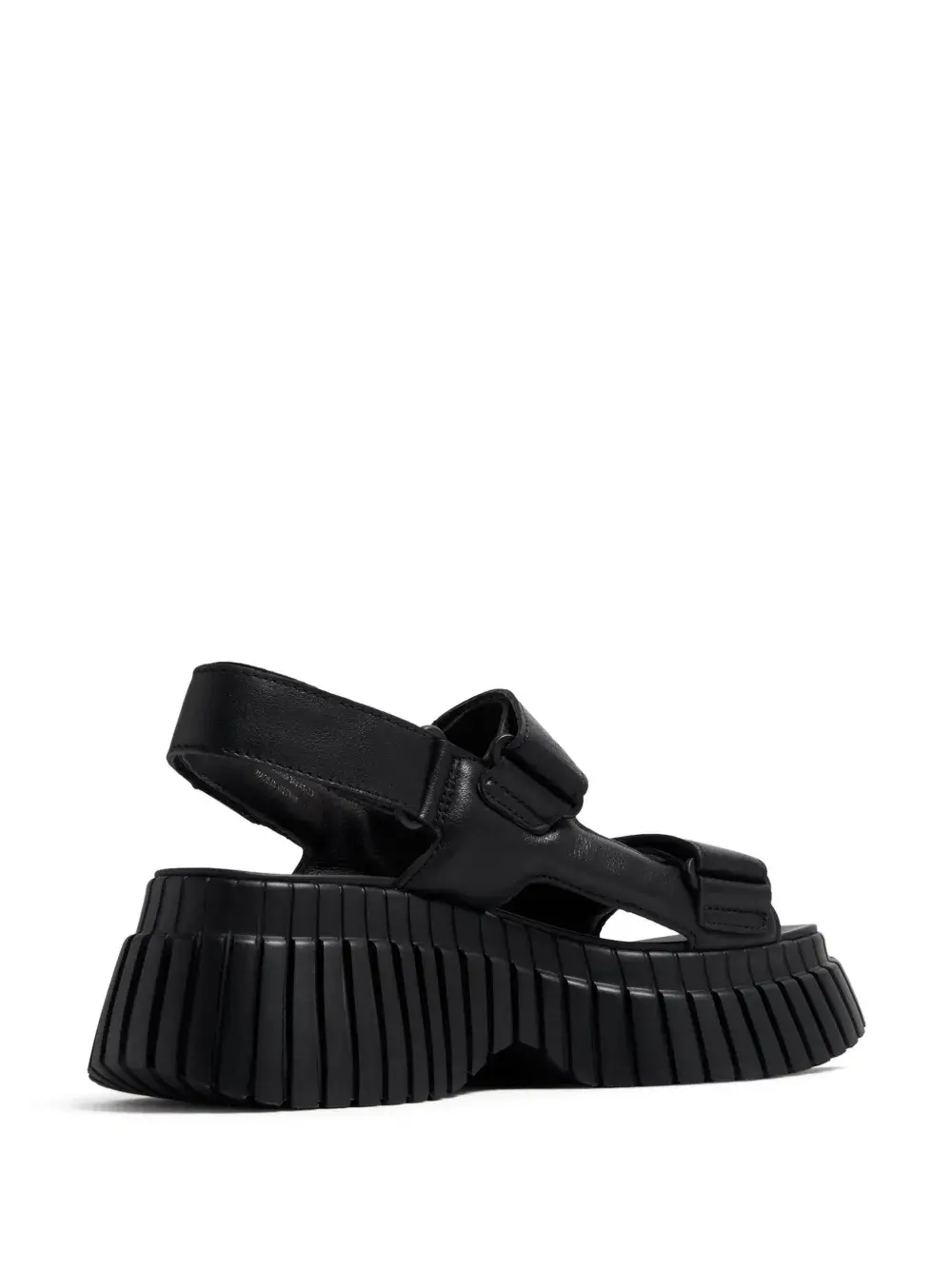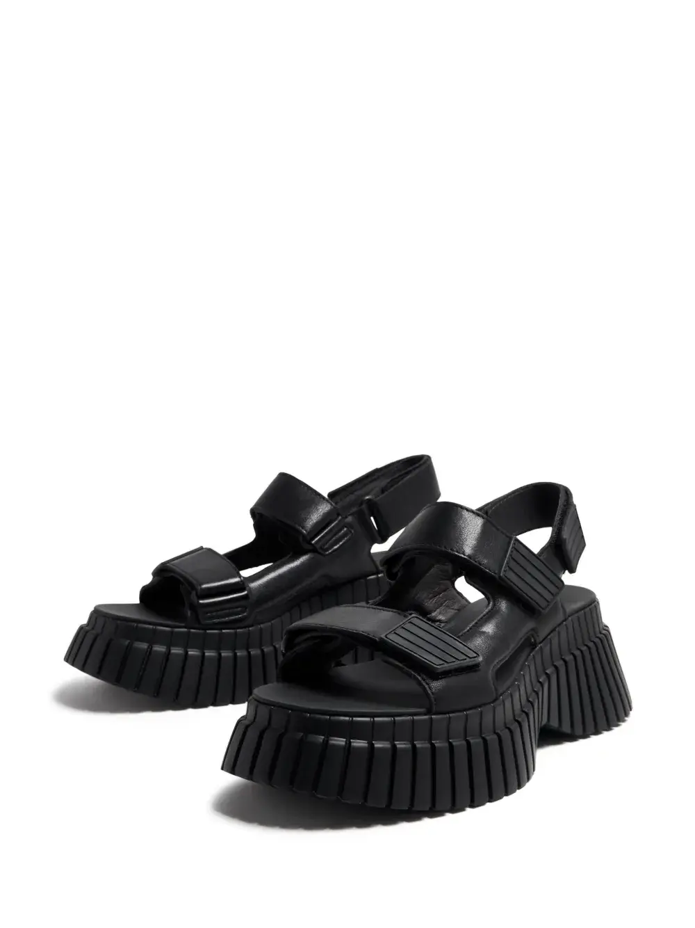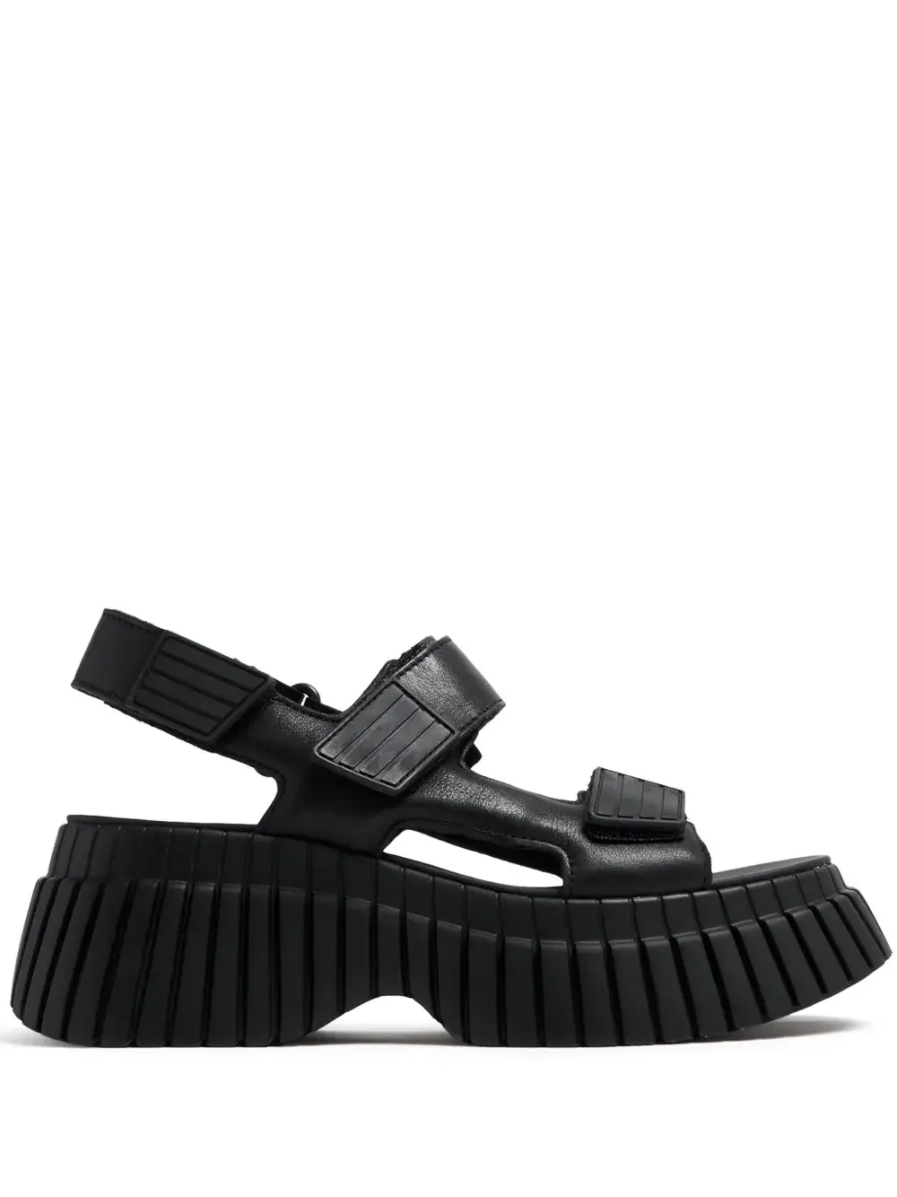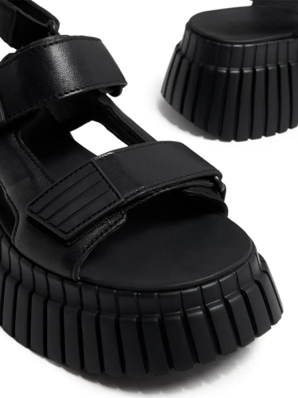 Подробнее о товаре: • черный • кожа • гладкая текстура кожи • детали в рубчик • закругленный открытый носок • застежка на липучке • ремешок на пятке • стелька с логотипом • подошва на платформе • массивная резиновая подошва • Кожа в составе этого товара сделана на фабрике, сертифицированной организациями Leather Working Group (LWG) или ICEC. Это гарантирует, что производитель минимизировал негативное влияние материала на окружающую среду.