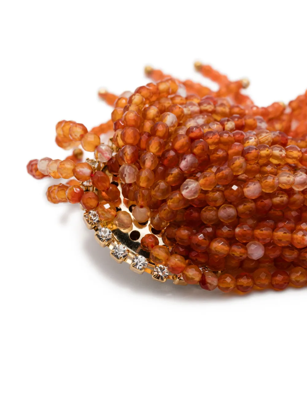 Серьги из оранжевого сердолика с кисточкой, застёжка-клипса. Эти серьги продаются парой. Ежедневное использование и воздействие внешних факторов могут ухудшить блеск драгоценных камней и золотых поверхностей. Для ухода используйте специальные неабразивные средства, предназначенные для чистки ювелирных изделий.
