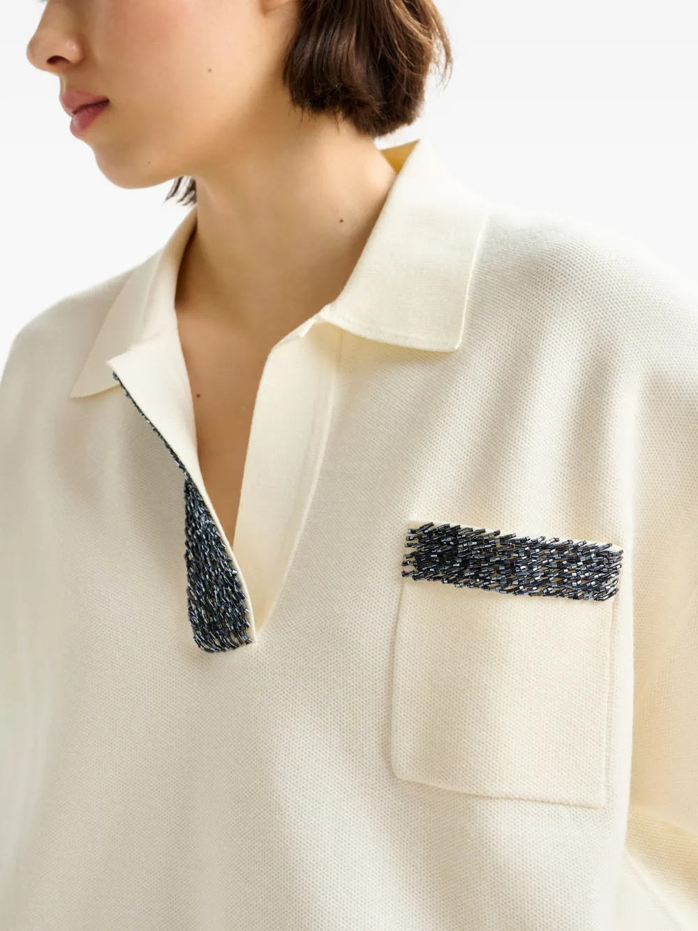 Рубашка-поло, украшенная бисером Essentiel Antwerp, белый