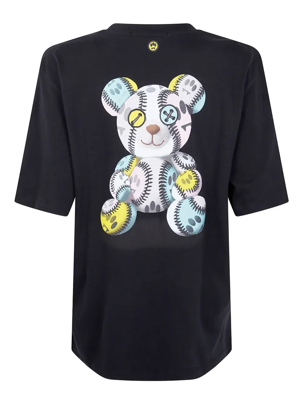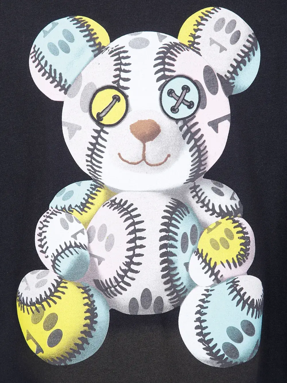 Черный хлопок с короткими рукавами и круглым вырезом, с графическим принтом