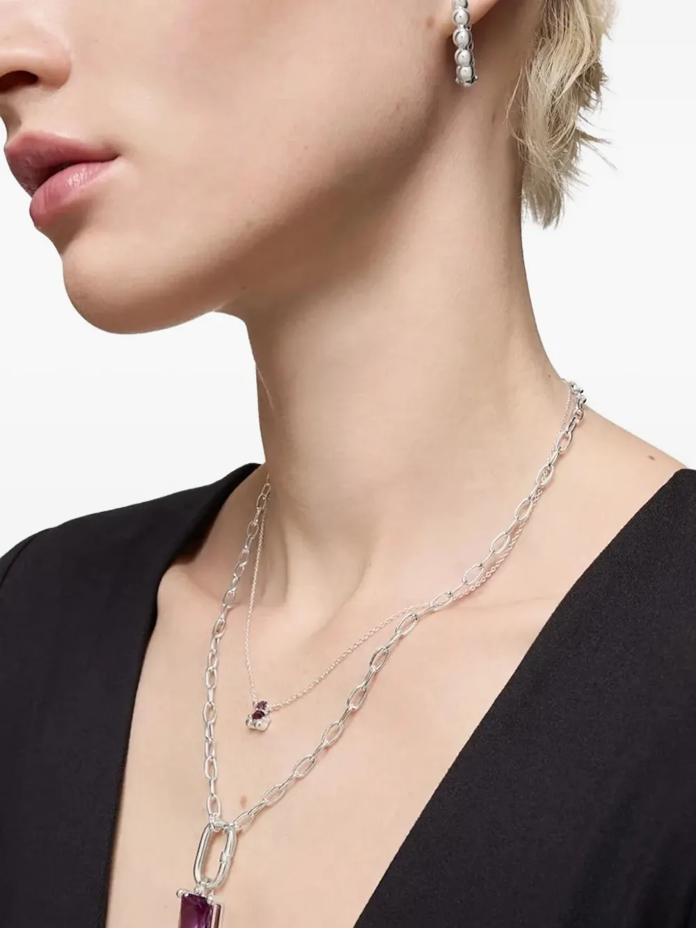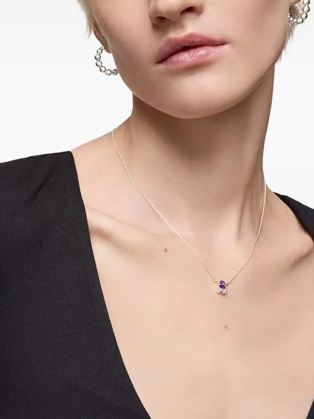Серебряная подвеска-цепочка в виде медведя из фиолетового камня с застежкой-карабином