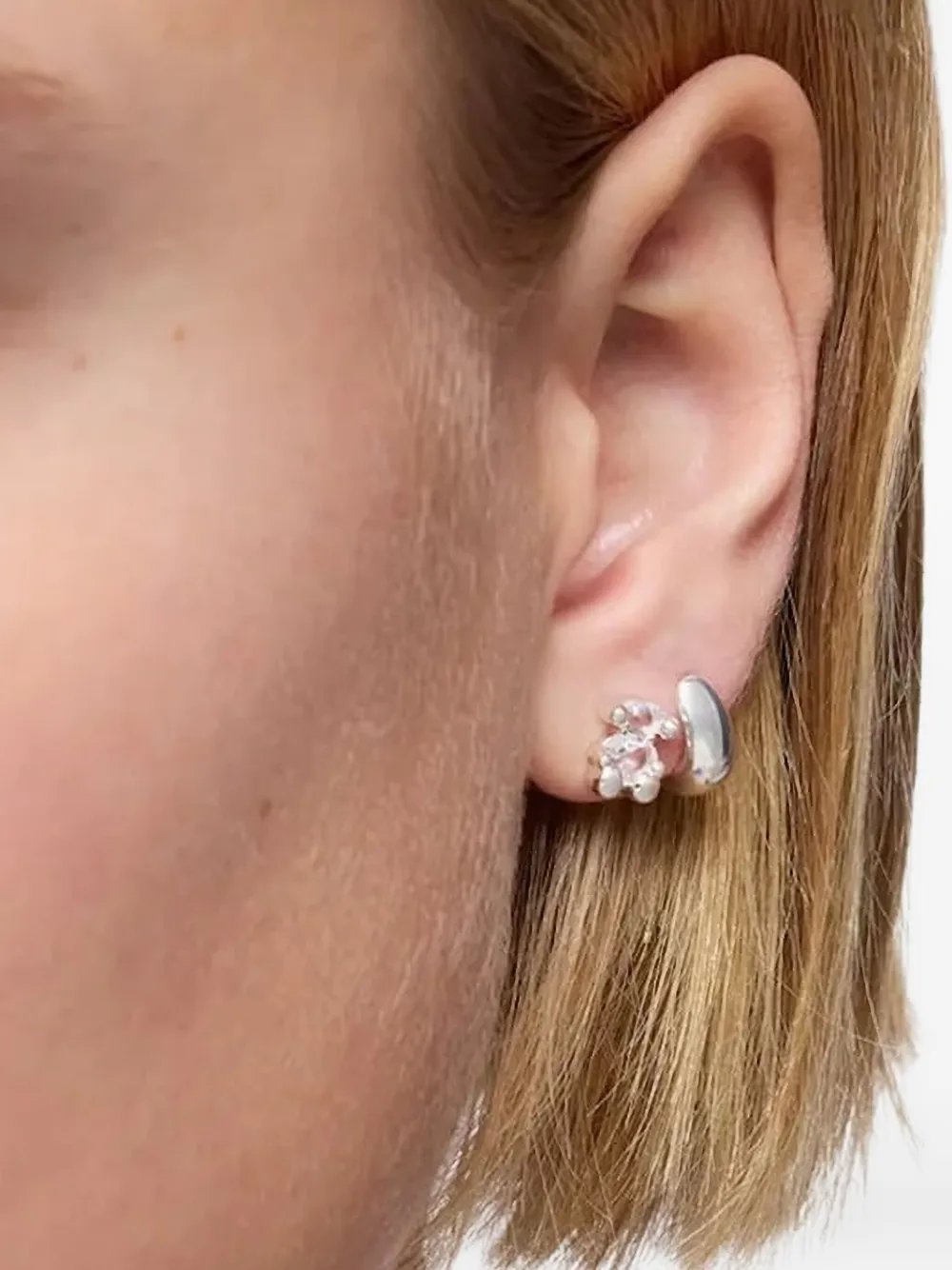 Застежка на заднюю часть серьги с серебристым мотивом в виде медведя. Серьги продаются парой.