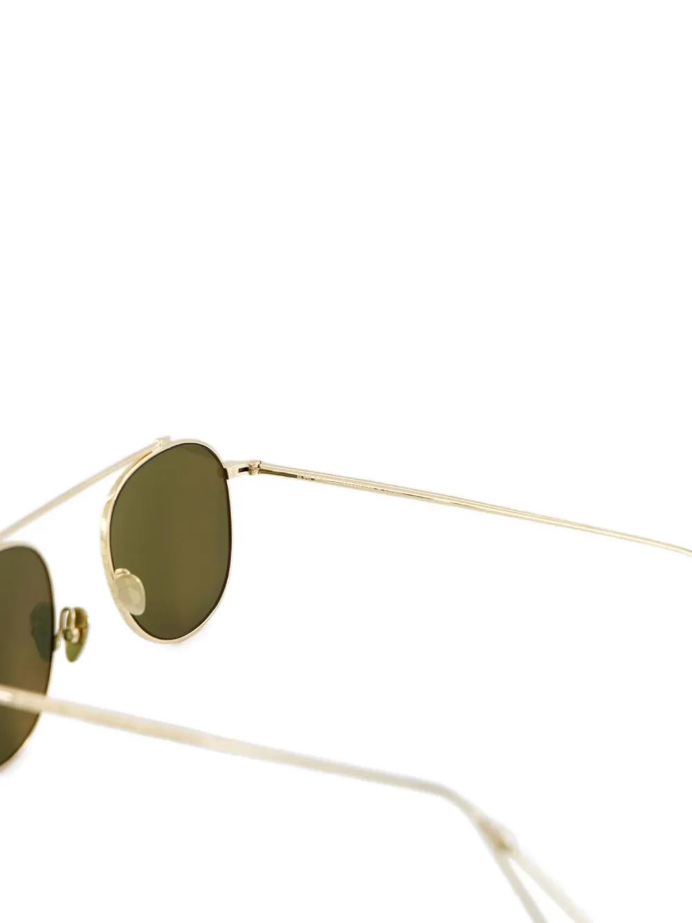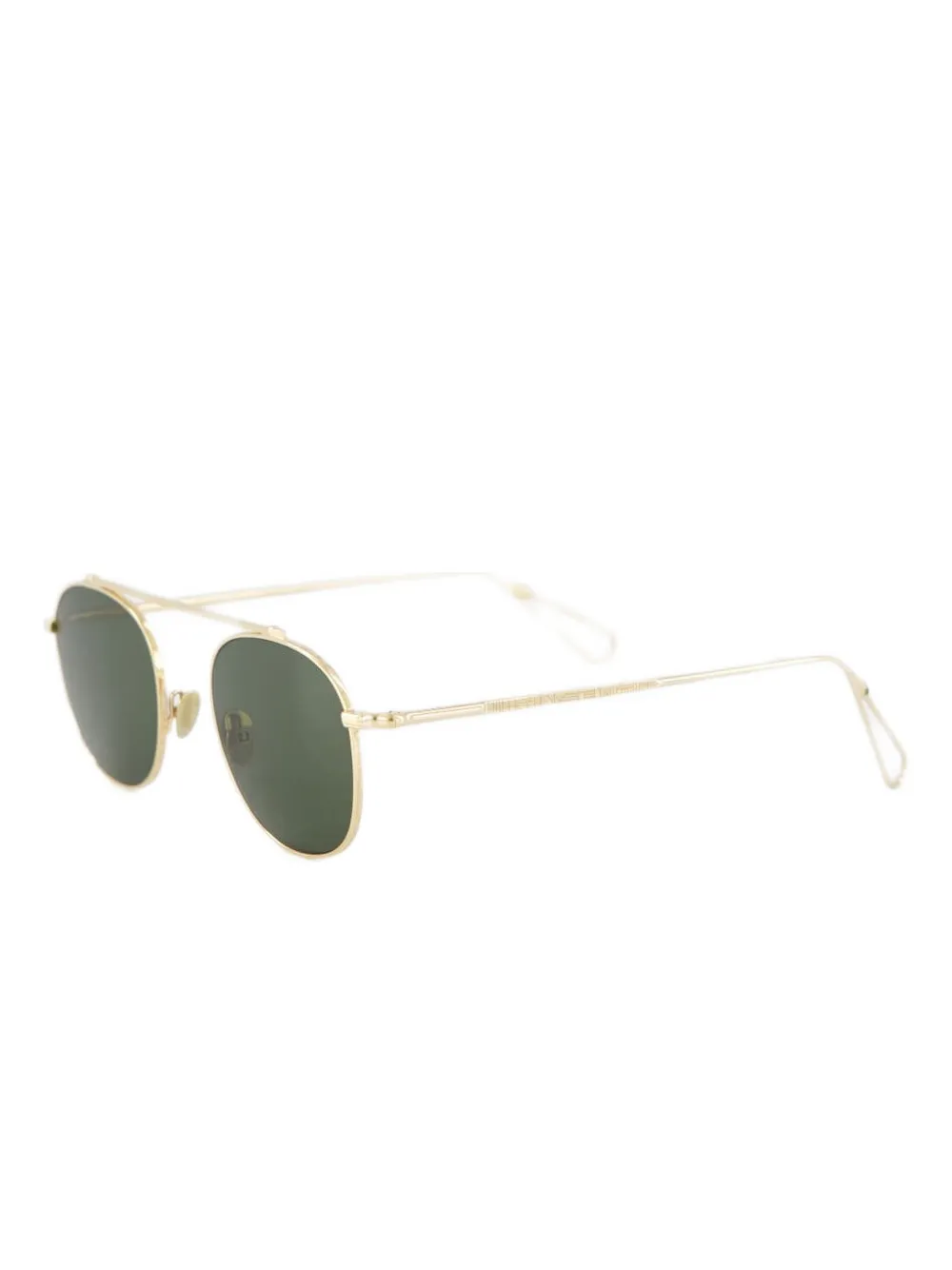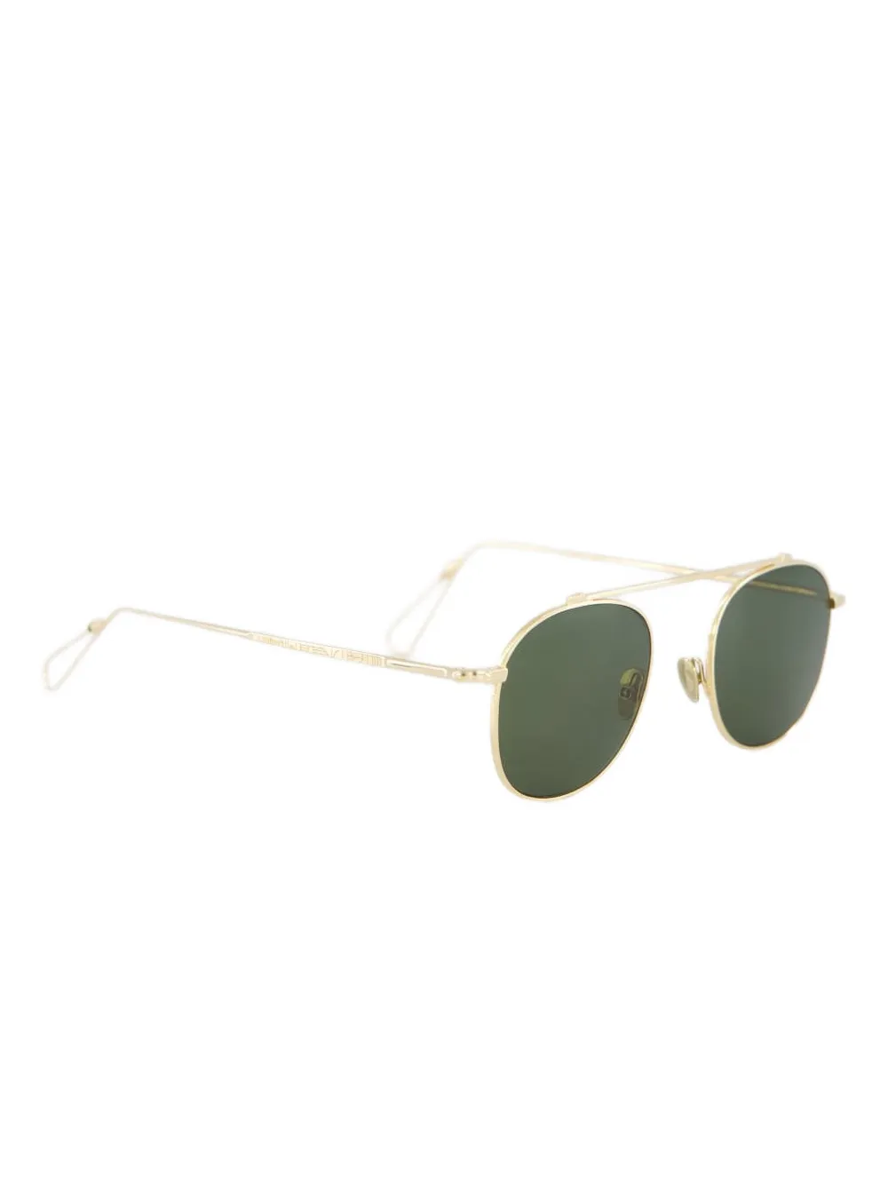 Круглая оправа с золотистой верхней перекладиной. Очки поставляются с защитным футляром.