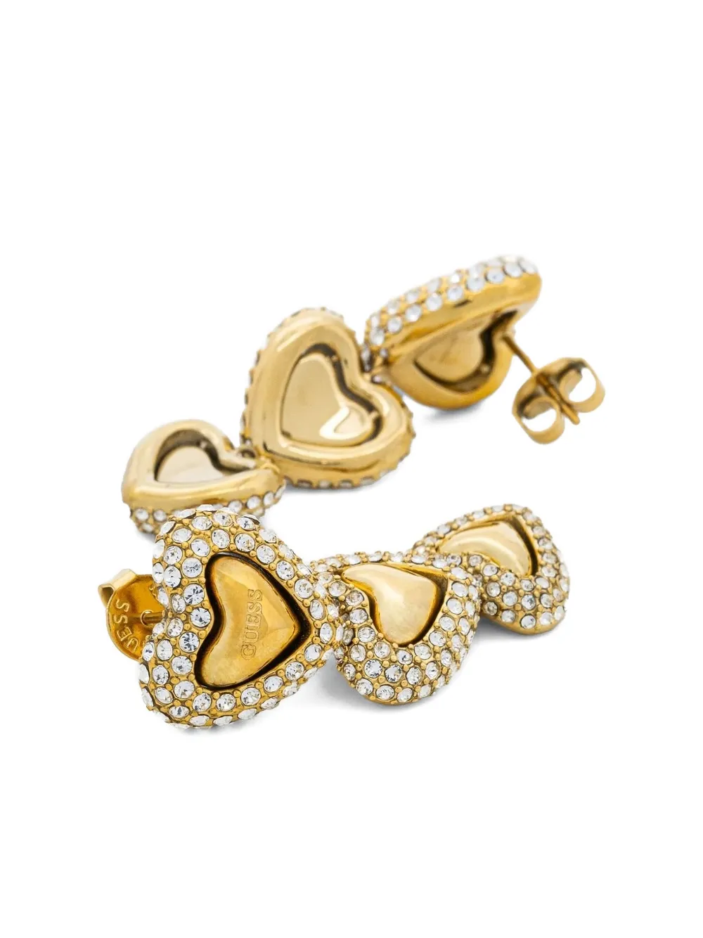 Серьги золотистого оттенка с тремя кристаллами в форме сердца, застежка на спинке. Эти серьги продаются парой.