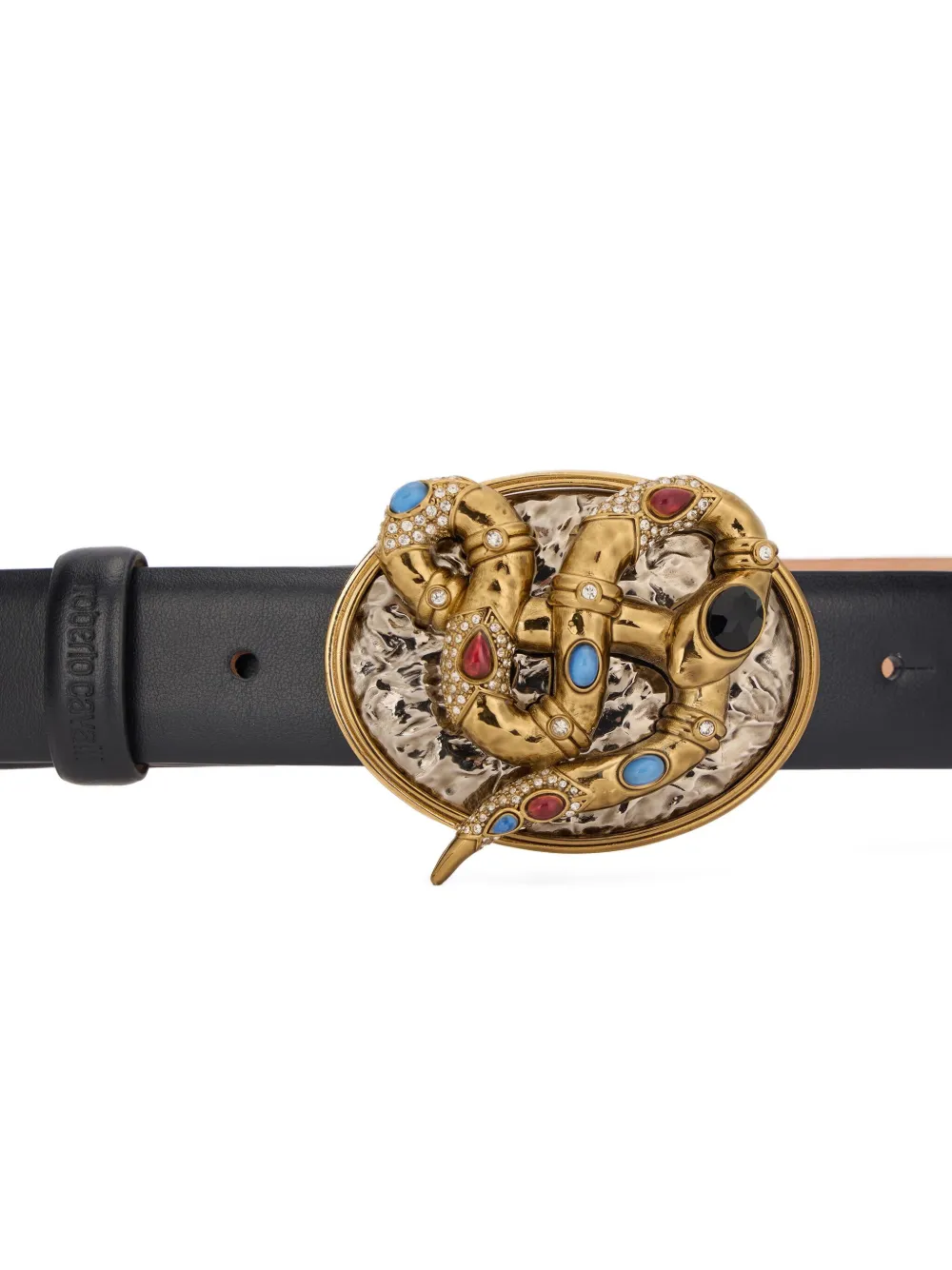 Ремень с пряжкой в форме змеи Roberto Cavalli, черный