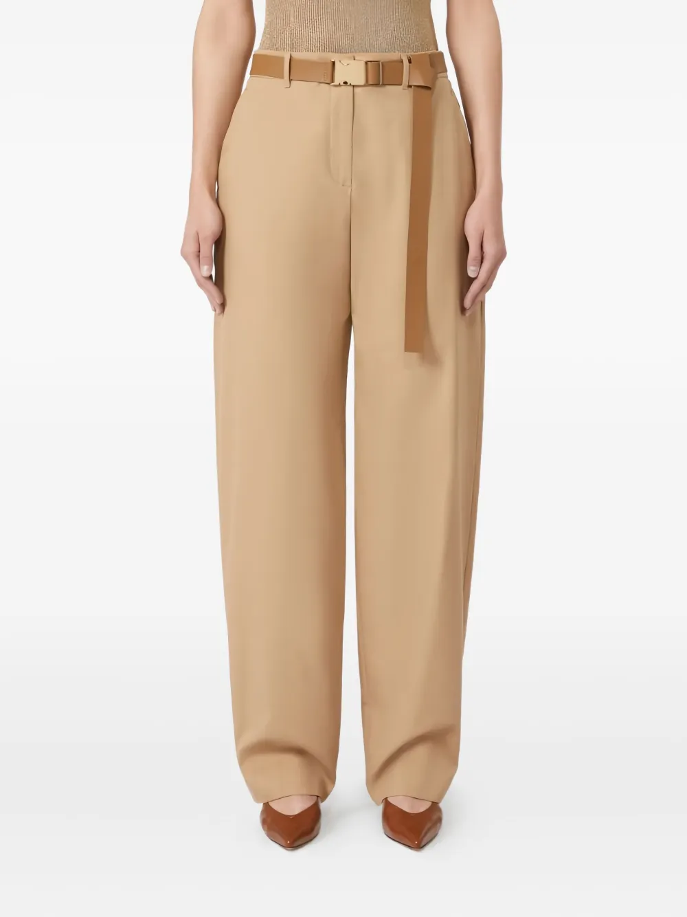 Хлопковые брюки с поясом MAX MARA, нейтральный