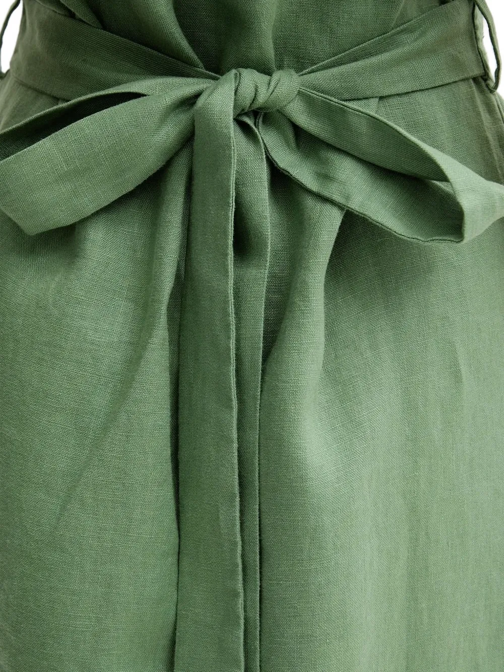 Льняное платье с поясом Pedro Del Hierro, зеленый