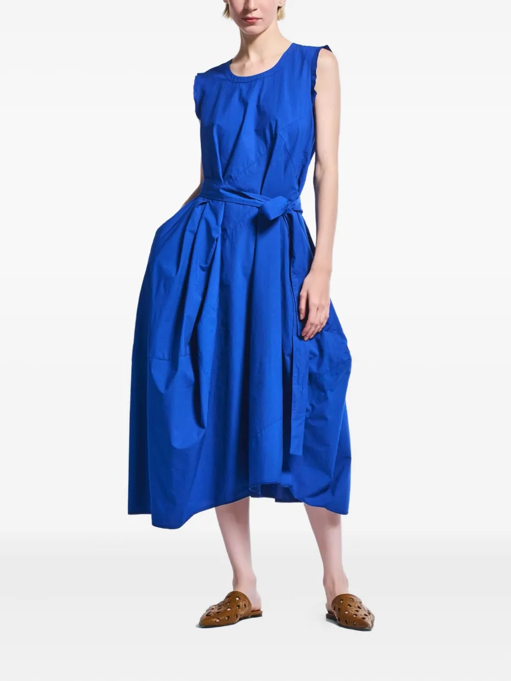 Синяя юбка без рукавов с поясом на талии, присборенная, асимметричный подол