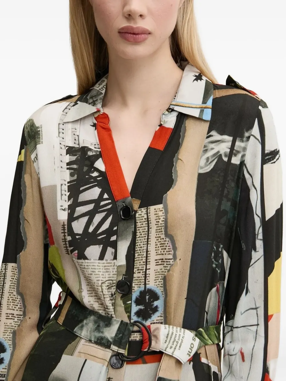 Платье-рубашка с принтом и поясом Desigual, нейтральный