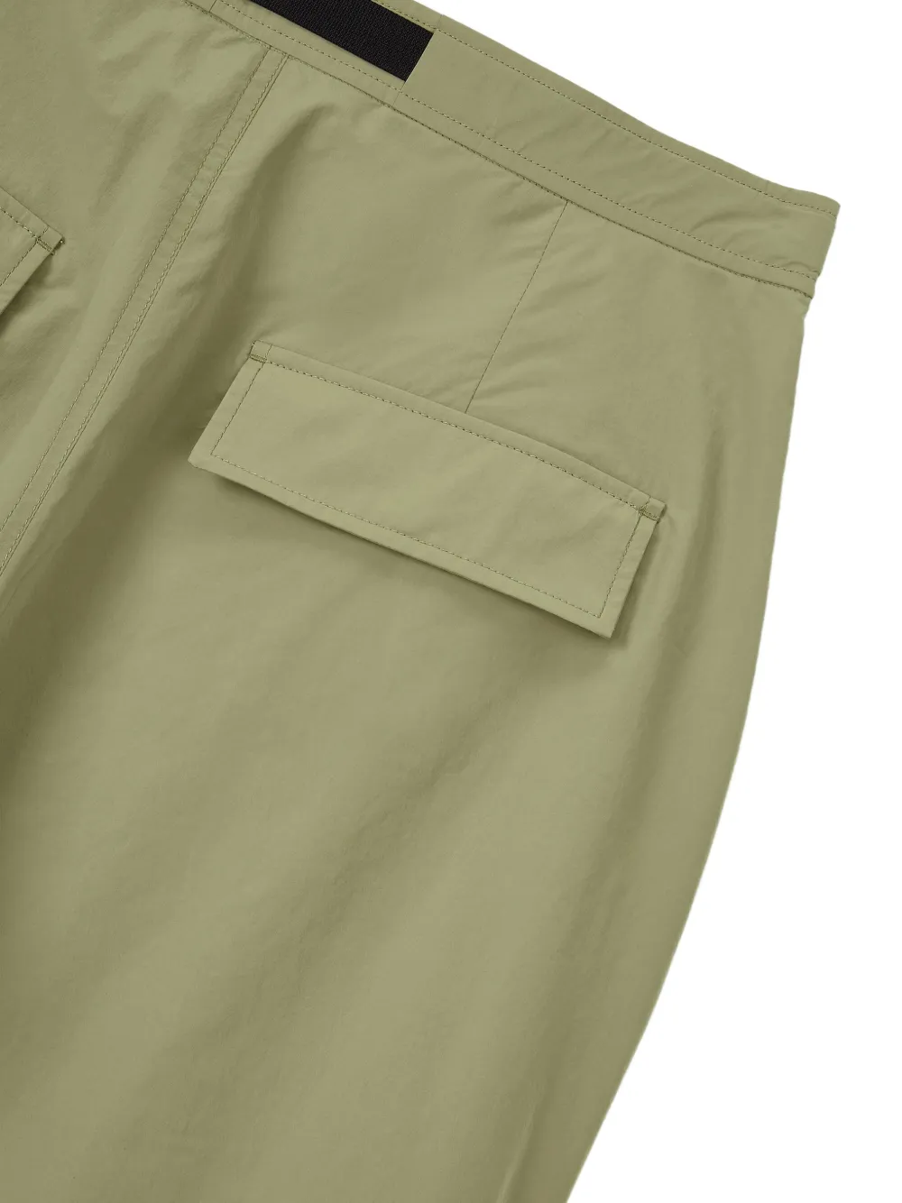 Пояс цвета хаки, застежка на пуговицы и молнию, два боковых диагональных кармана
