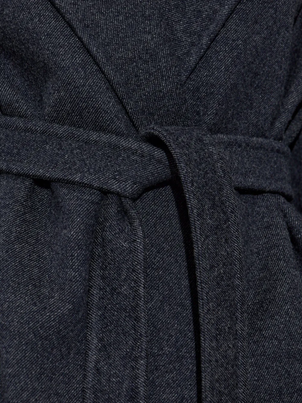 Темно-серый шерстяной ремешок с завязками, заостренные лацканы, длинные рукава, запах спереди