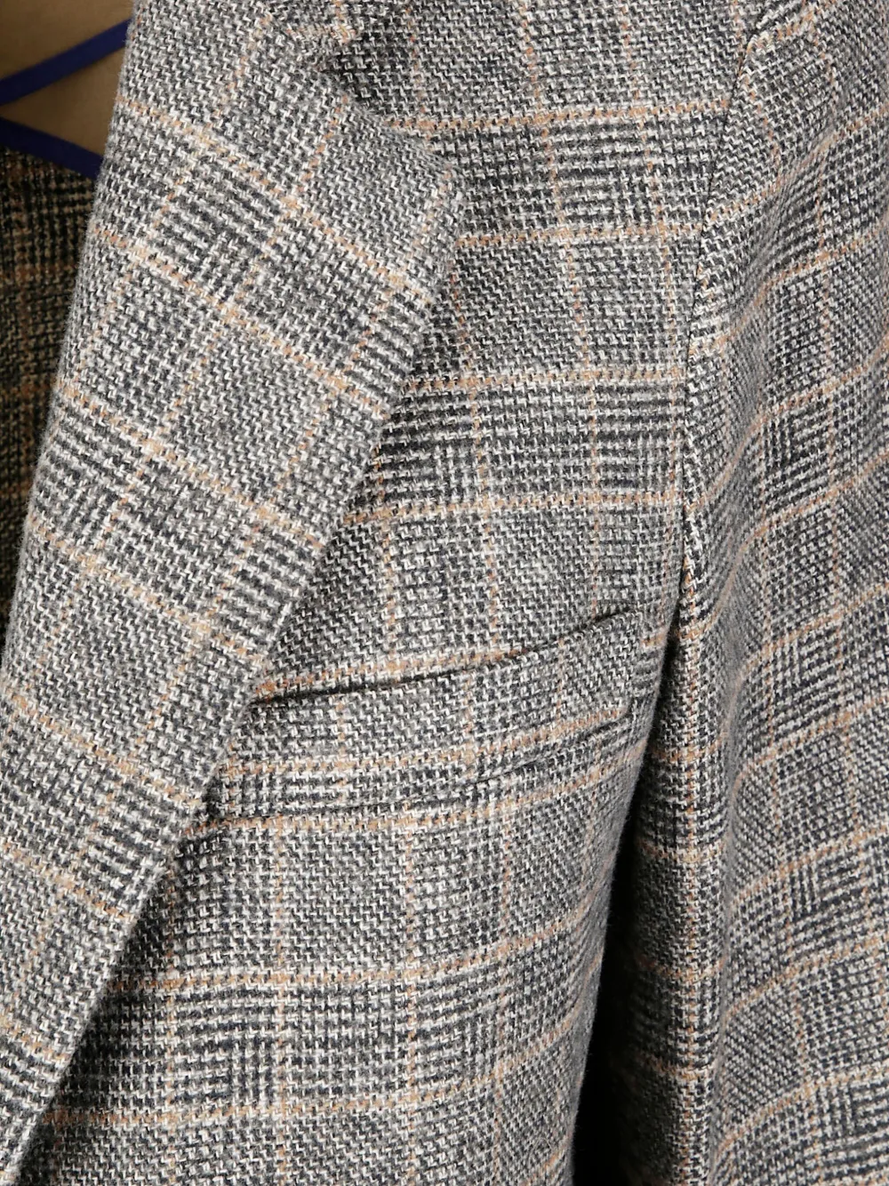 Серый клетчатый узор, двойные манжеты, застежка на две пуговицы, прорезной карман с отворотом