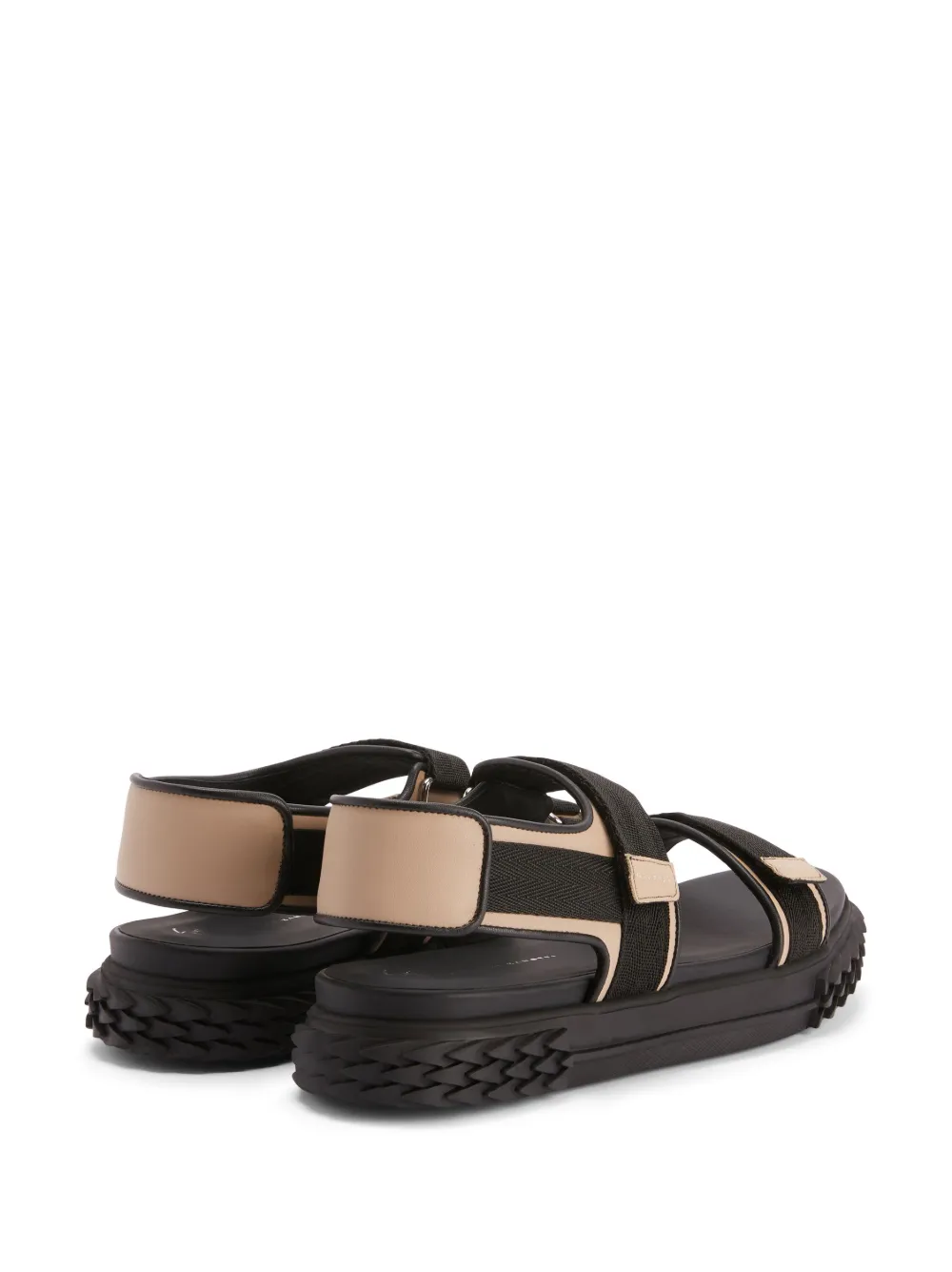 Расцветка Light Brown, черный, кожа, логотип спереди, открытый носок, застежка на липучке сзади, кожаная стелька с логотипом и плоская резиновая подошва.