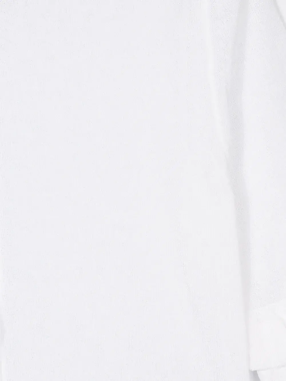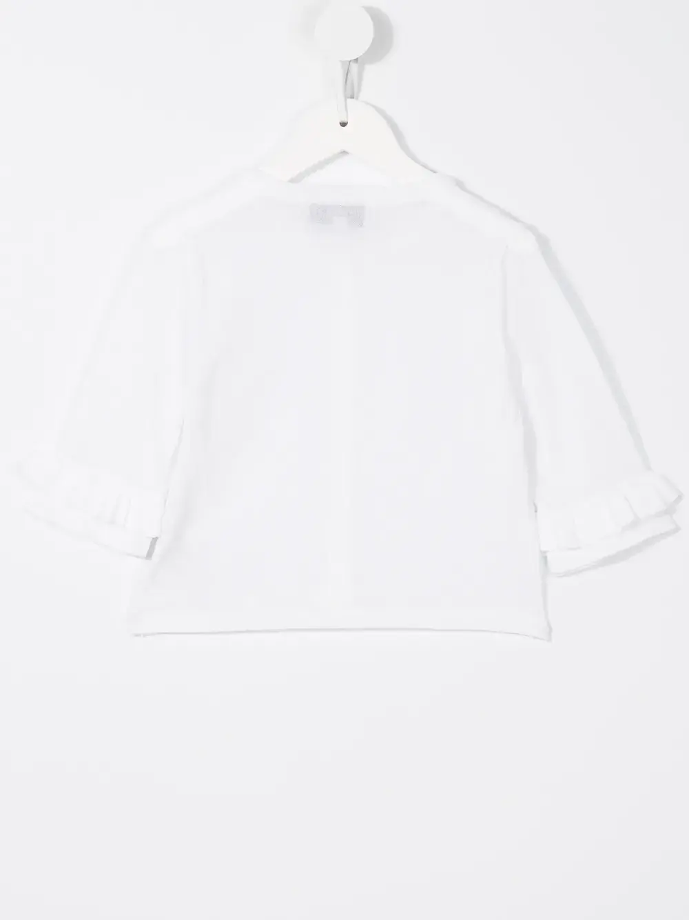 Белая блузка с оборчатыми рукавами от Simonetta. Круглый вырез, застежка на пуговицах спереди, прямой подол.