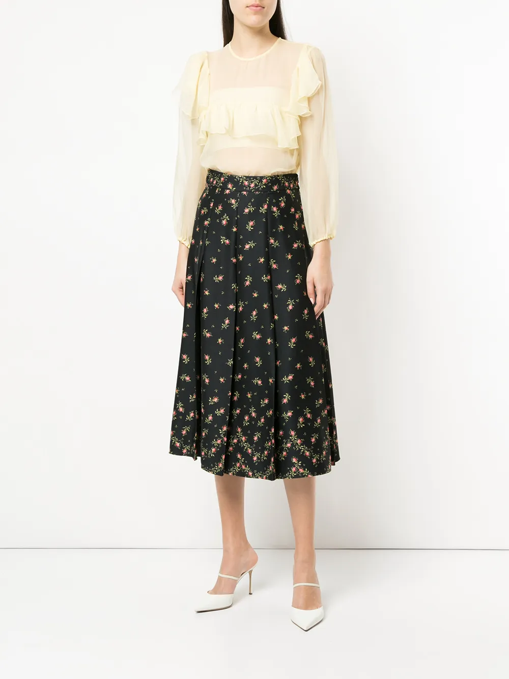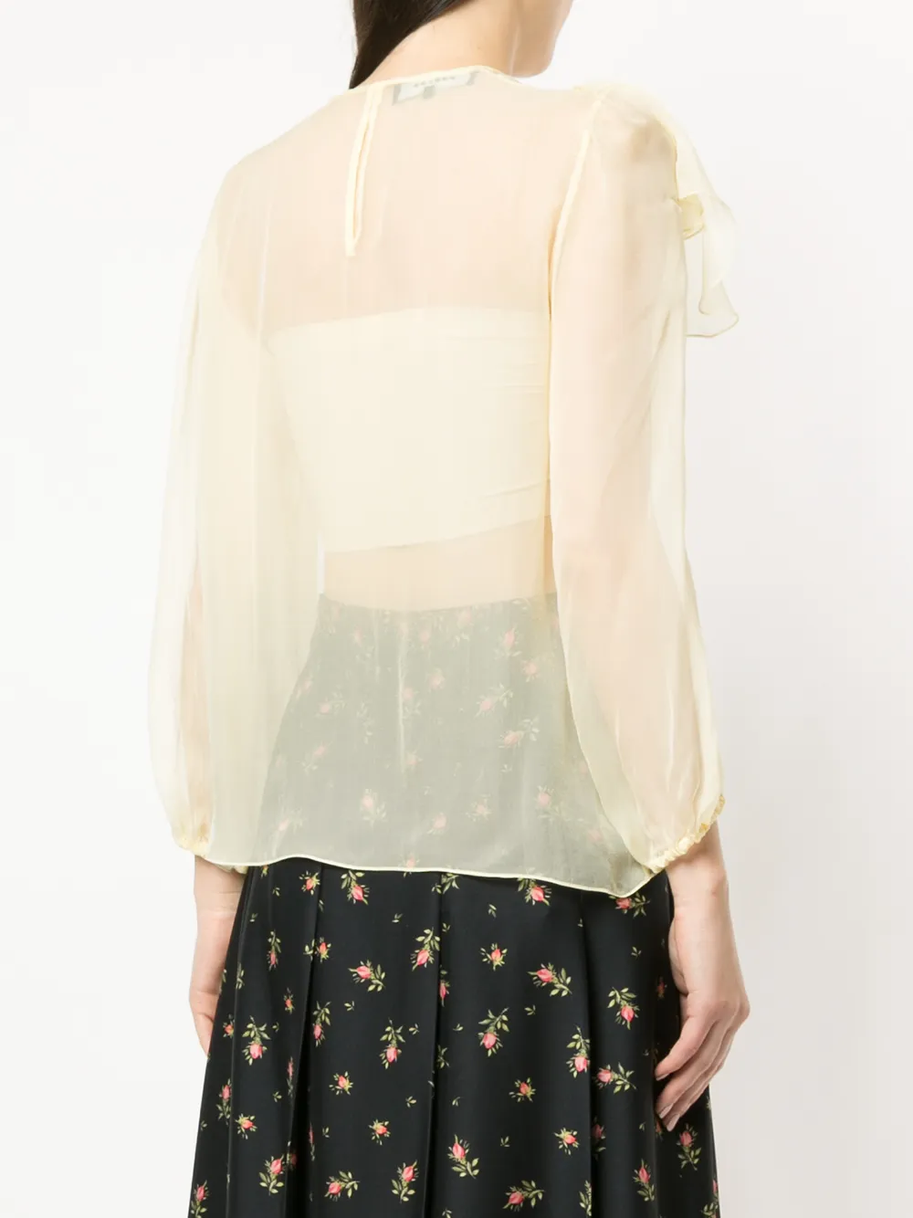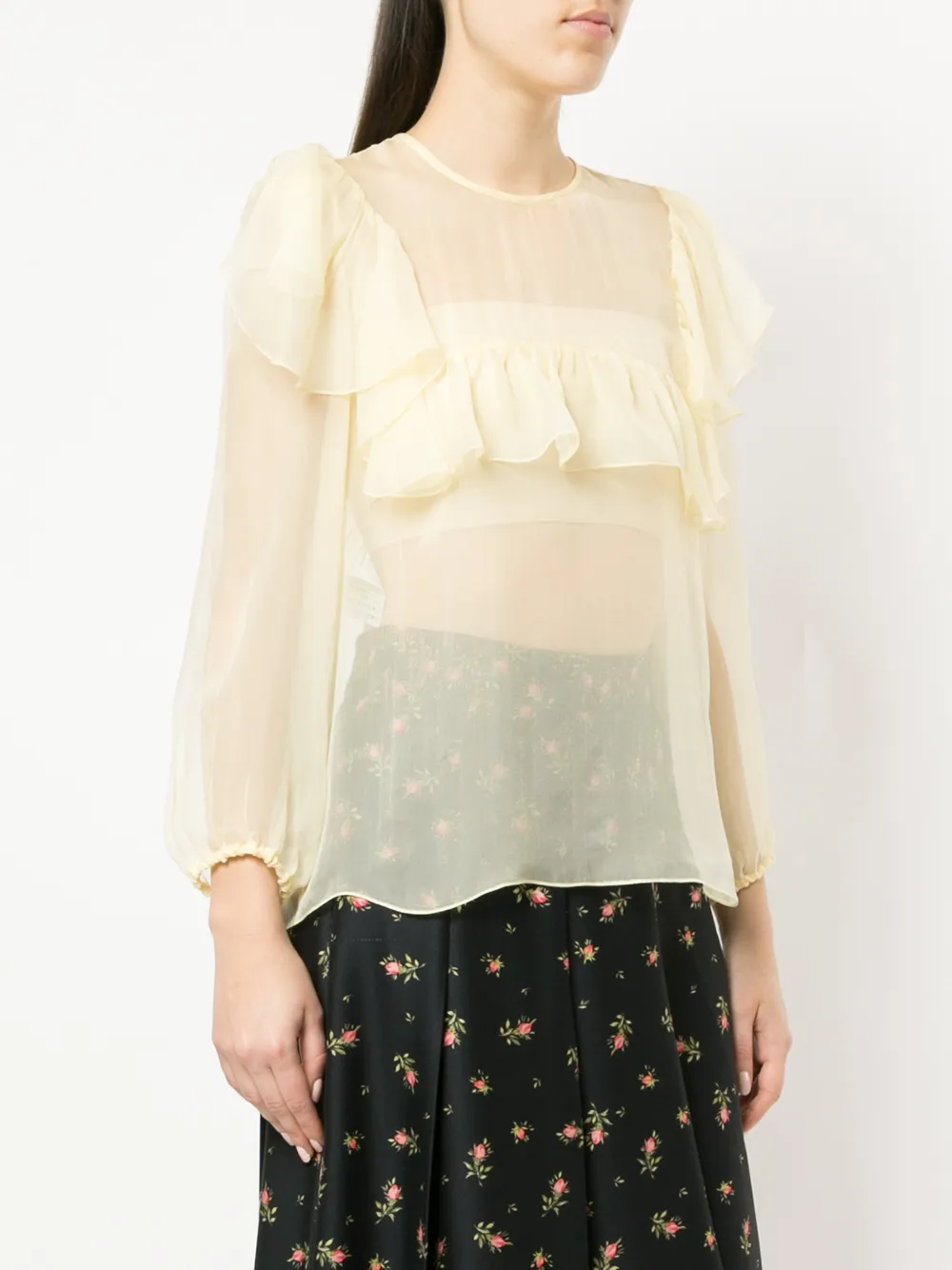 Блузка с оборками от Rochas. Круглый вырез, длинные рукава, воротник с рюшами и прозрачная деталь. Цвет: белый.