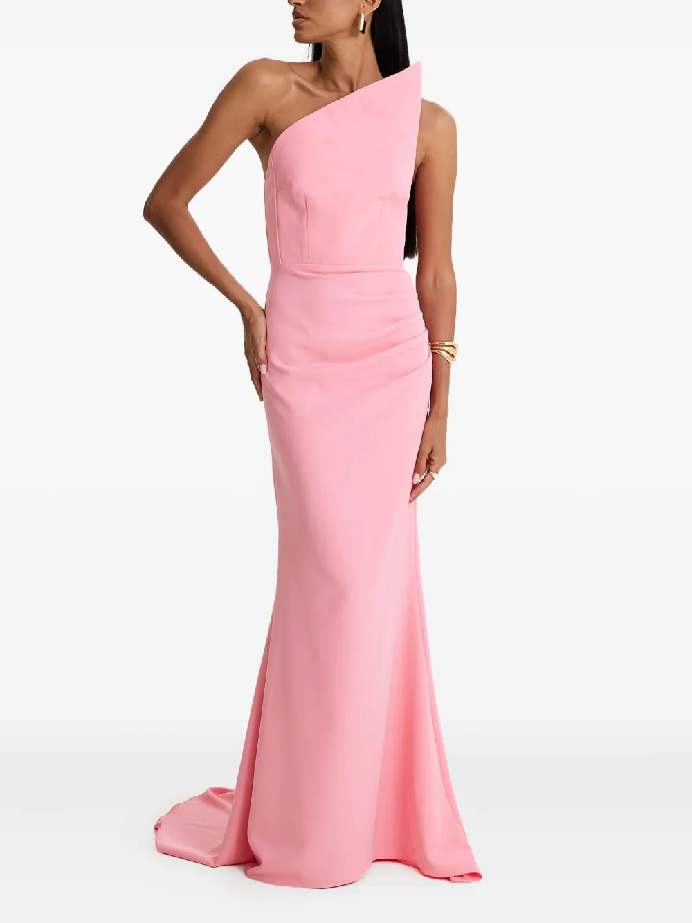 Розовый вырез на одно плечо, драпированный лиф, приталенный силуэт, юбка длиной до пола, фасон «рыбий хвост»