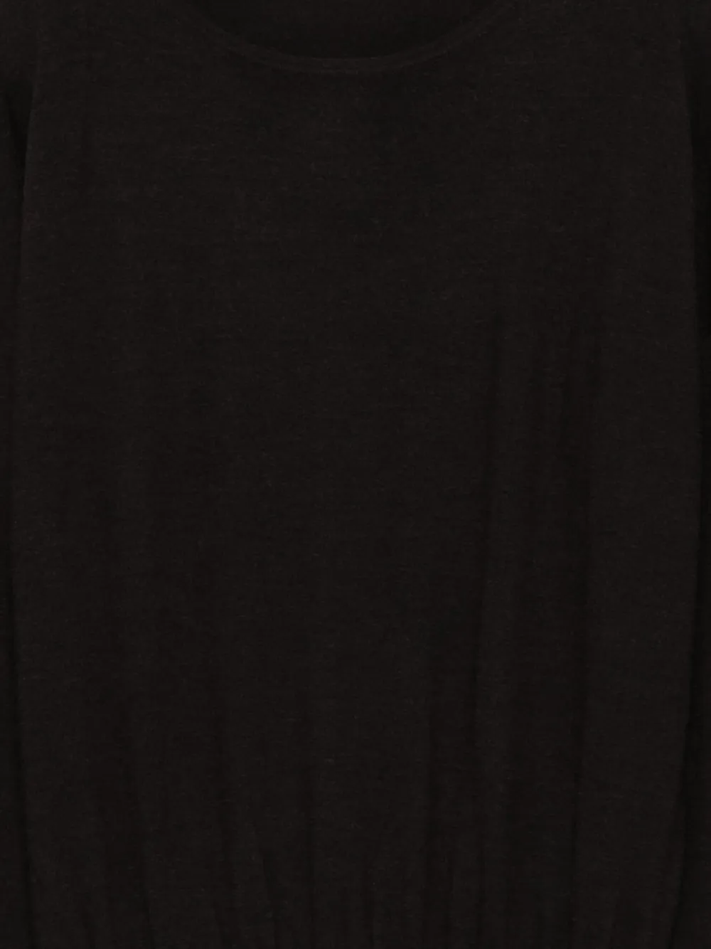 Черный лиф с вырезом лодочкой, длинными рукавами, резинкой на талии, длина миди