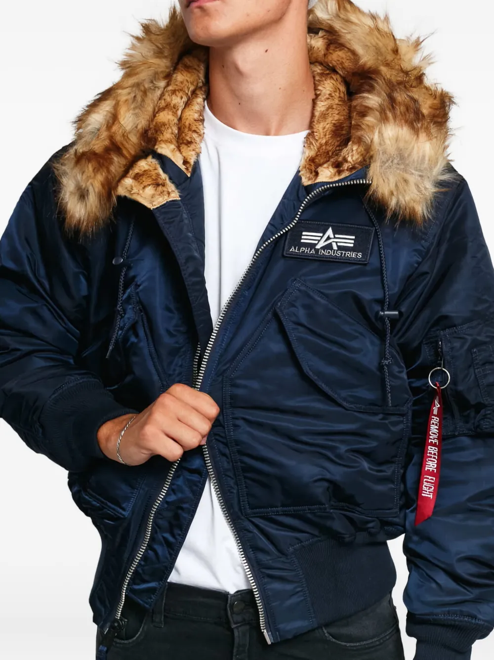 Бомбер 45P с капюшоном и искусственным мехом Alpha Industries, синий