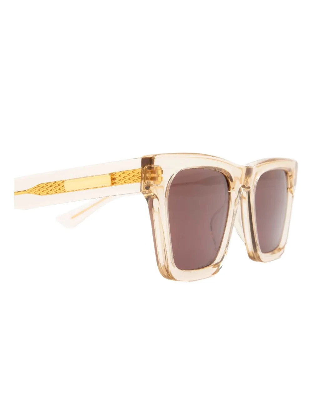 Квадратная оправа со светло-желтыми тонированными линзами. Очки поставляются с защитным футляром.