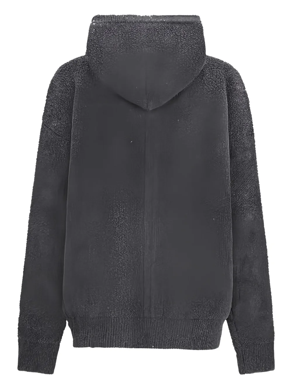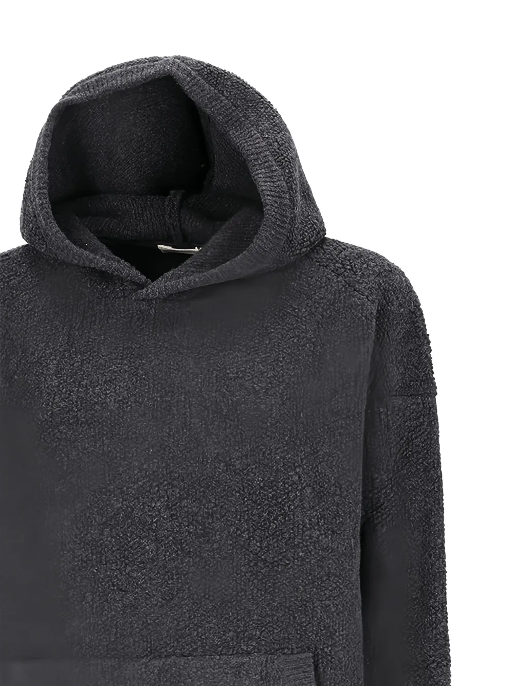 Серый букле, ворсистый трикотаж, карман-кенгуру, капюшон, вырез горловины, длинные рукава