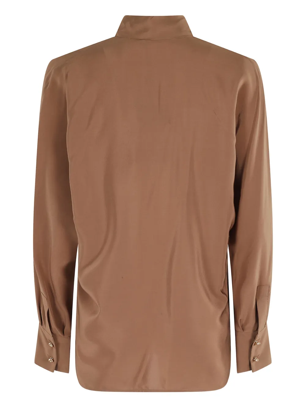 Коричневый шелковый воротник-бантик, длинные рукава, манжеты на пуговицах