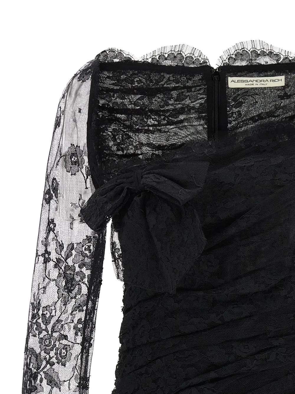 Мини-платье из кружева с бантом Alessandra Rich, черный