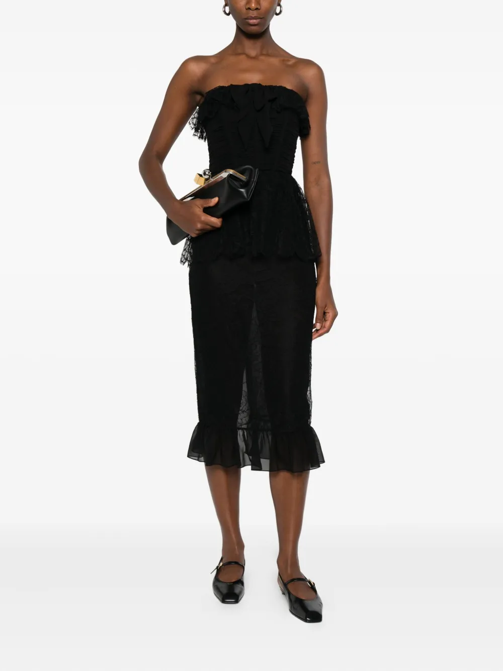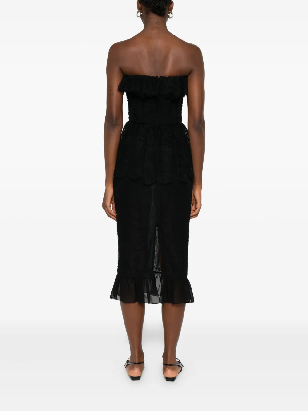 Черный кружевной оборчатый подол без бретелек с бантом