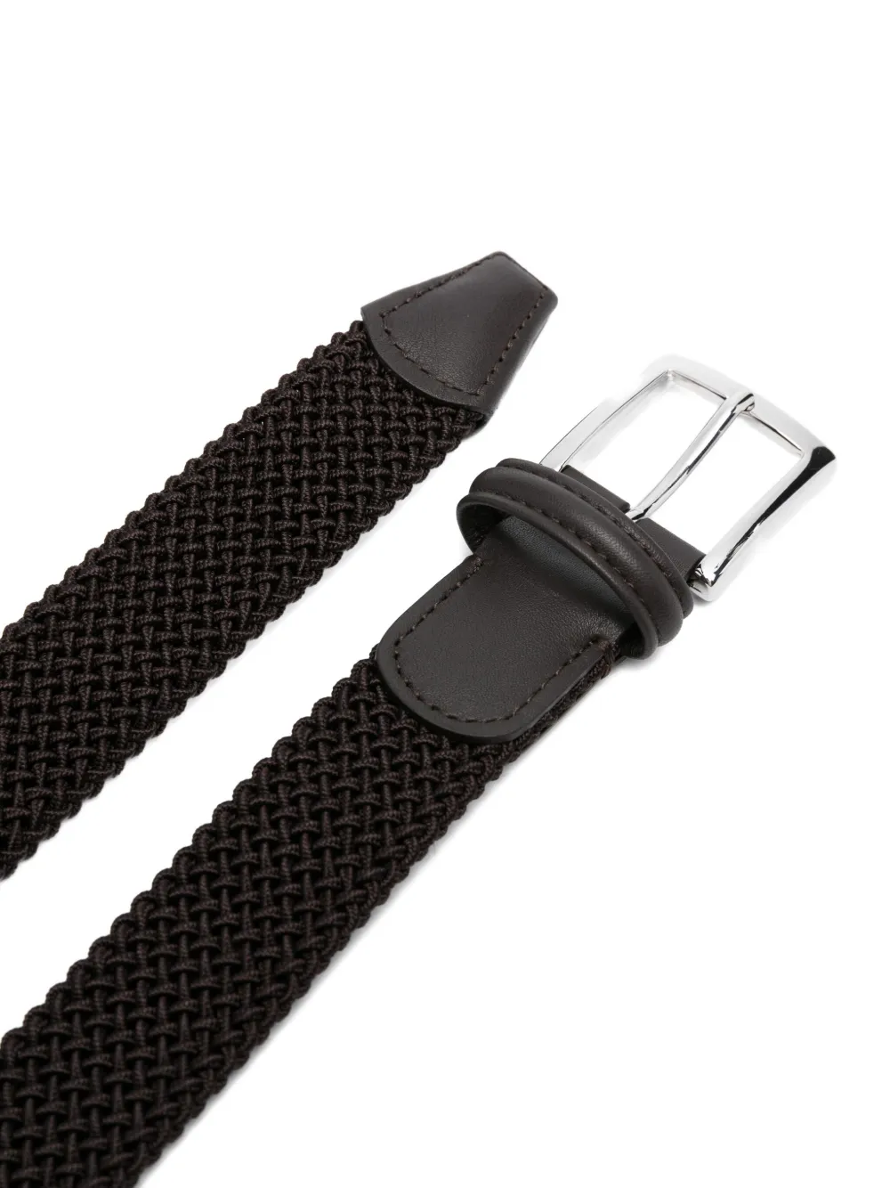 Коричневая плетеная кожаная отделка, серебристая пряжка, прямоугольная пряжка, регулируемая