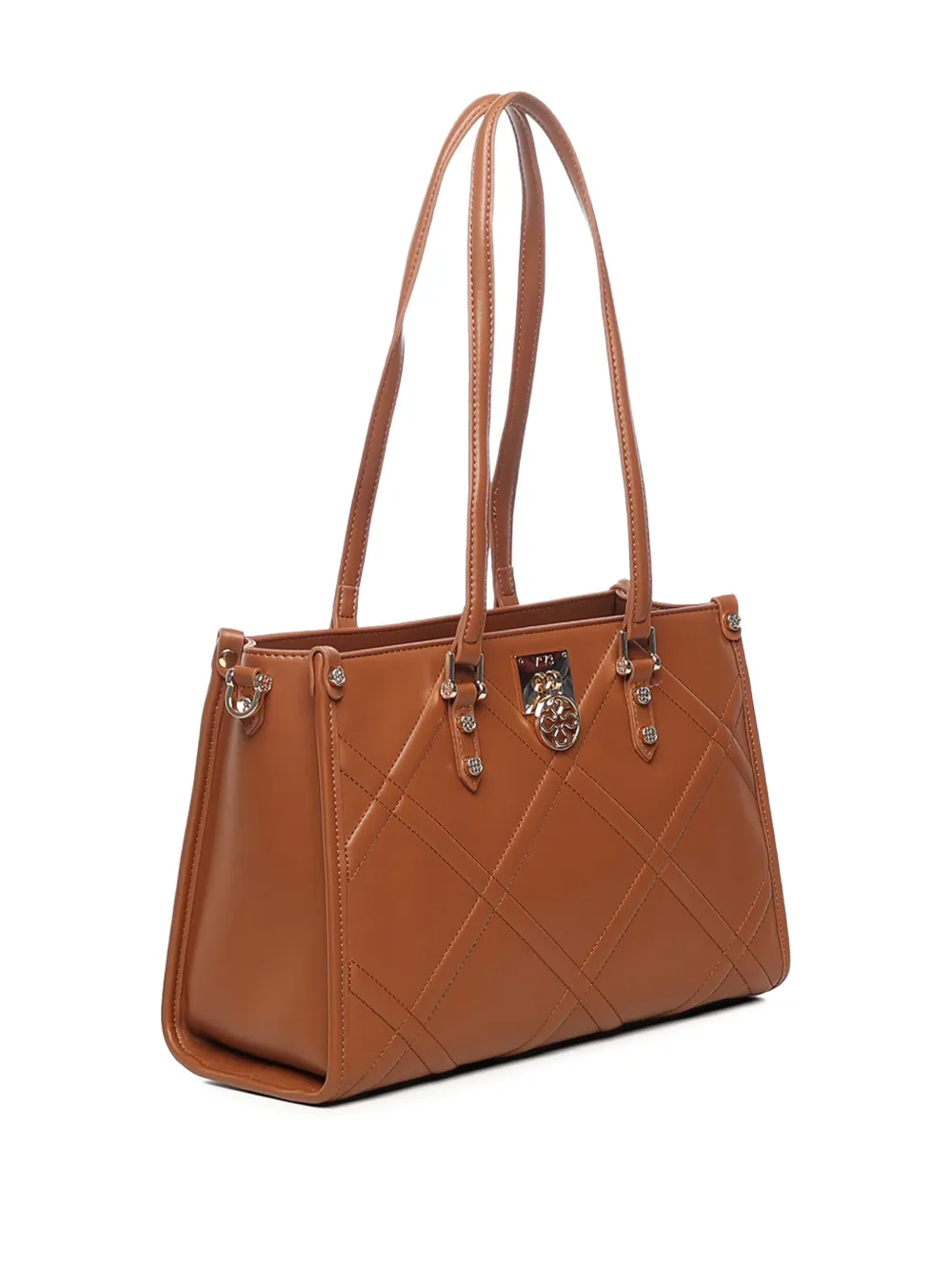 Коричневый стеганый узор, бляшка с логотипом, верхние ручки, съемный плечевой ремень, застежка-молния