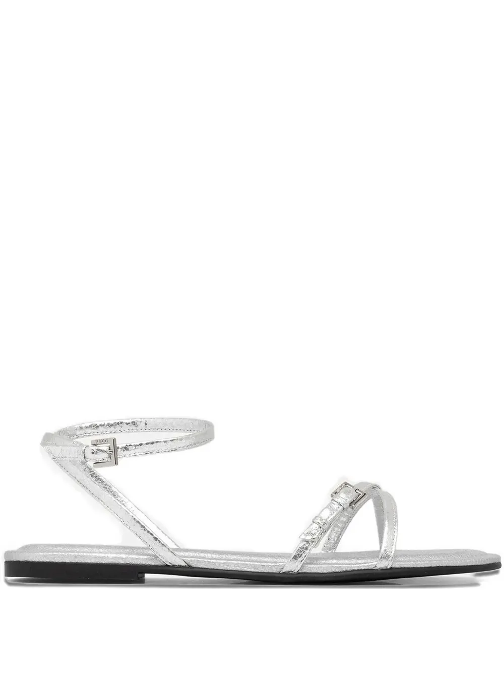 Ремешок на щиколотке с пряжкой серебристого тона, застежка на пряжку, плоская подошва, резиновая подошва